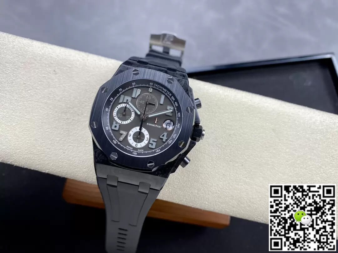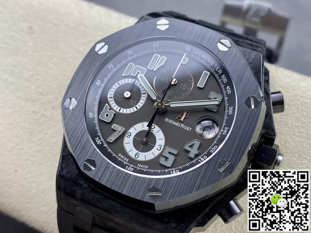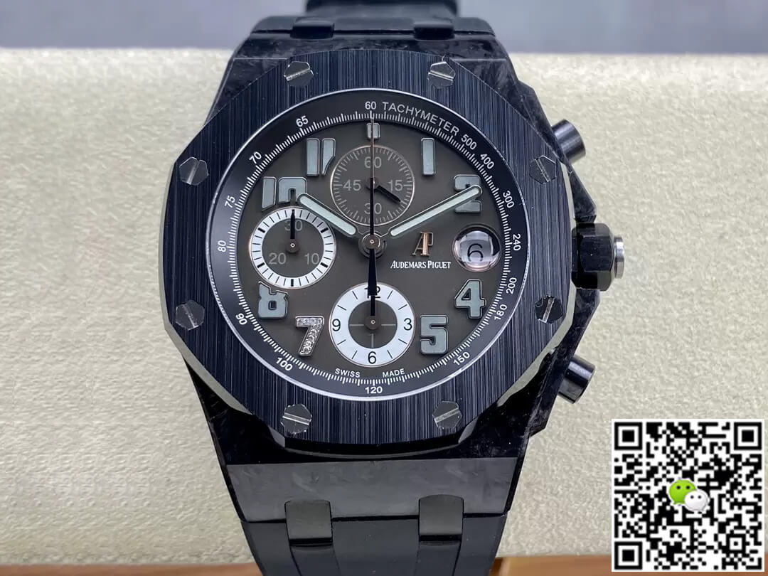 What is a replica watch? To put it simply, it is a watch made by replicating the various parts of the genuine watch according to 1:1 mold opening, that is, a replica watch. Its design, materials, and workmanship will strictly imitate the authentic manufacturing. This kind of watch has many advantages such as high simulation degree, fine workmanship and stable performance. Most replica watches can also achieve all the functions of the original watch, which is why many replica watches can be exported overseas. If you are looking to buy a high imitation watch, then this APF Factory Replica Audemars Piguet Royal Oak Offshore 26205AU.OO.D002CR.01 Black Strap is a very good choice.