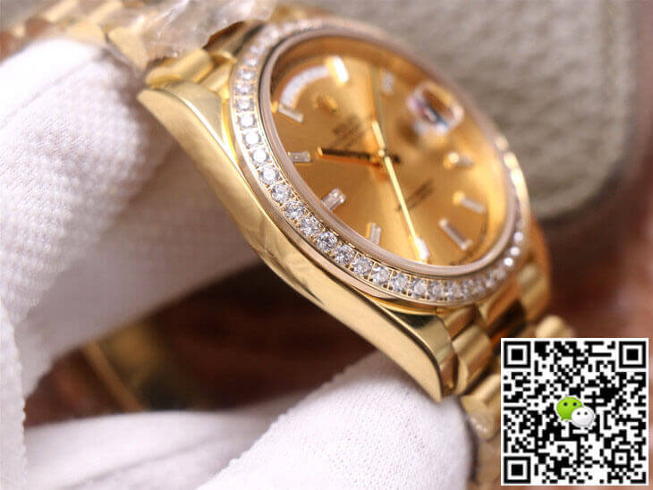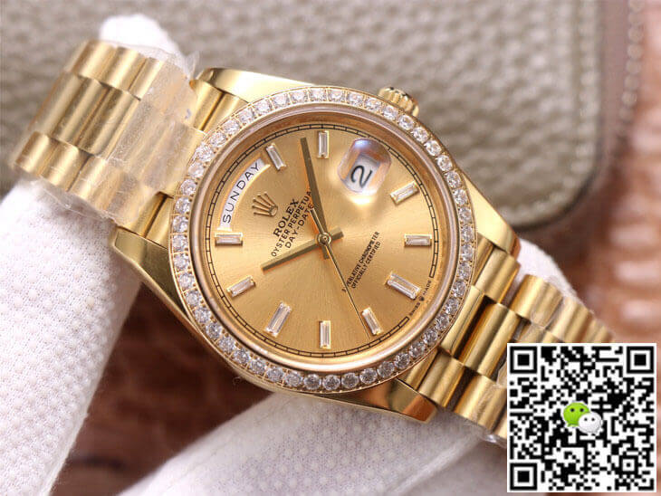 We sell the best EW Factory Replica Rolex Day Date M228348RBR-0002 18ct Gold Strap fake watches, this is EW Factory by purchasing original replica Rolex Day Date series watches. If you are interested in wholesale replica Rolex watches, you can contact our online customer service and give the lowest wholesale price according to the quantity you need.