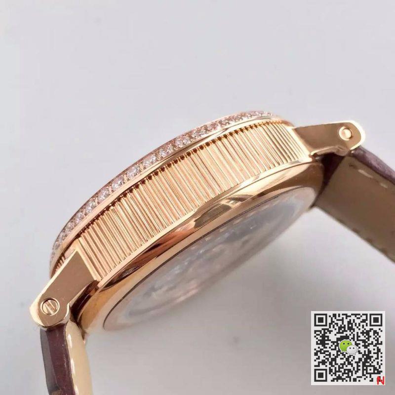 - ZF factory best edition Breguet Reine de Naples 8918BA/58/864.D00D watch’s dial size is 36.5 mm x 28.45 mm, and adopt Swiss ETA Caliber 537/3 automatic movement, sapphire glass mirror, mother of pearl dial and artificially inlaid zircon. The design inspiration of Breguet Reine de Naples 8918BA/58/864.D00D is come from the world’s first wristwatch created by Breguet watch master for Carolyn Muira that the Queen of Naples. This replica Breguet Reine de Naples 8918BA/58/864.D00D use goose-oval-shape watch case and movement that is of unique design and beautiful curve. The Breguet Reine de Naples 8918BA/58/864.D00D adopt 18K yellow gold plated 316L stainless steel case and not discolored and get rusty, and high-precision sapphire glass which is anti-scratch.
