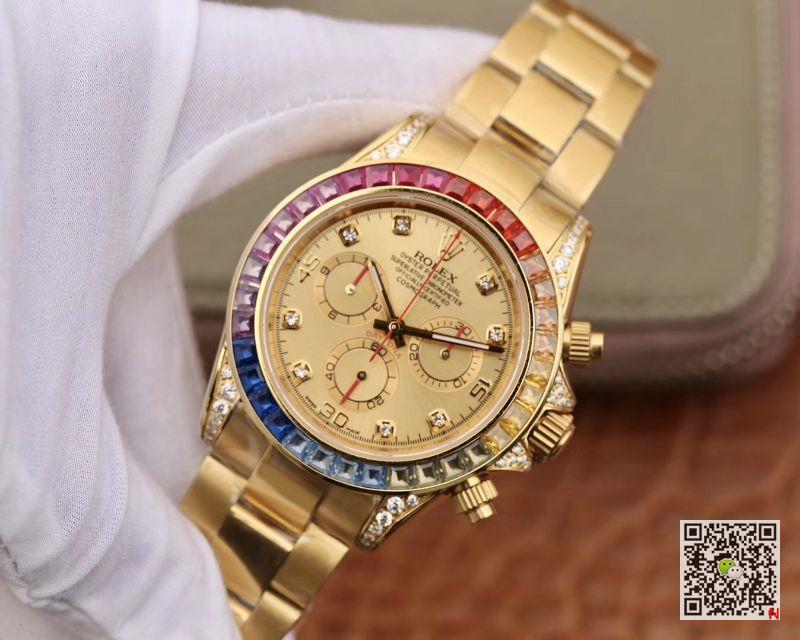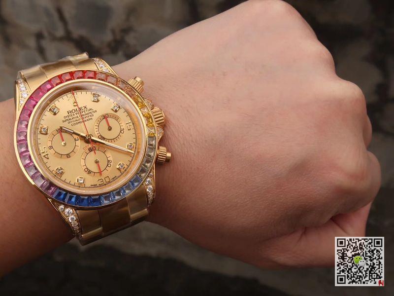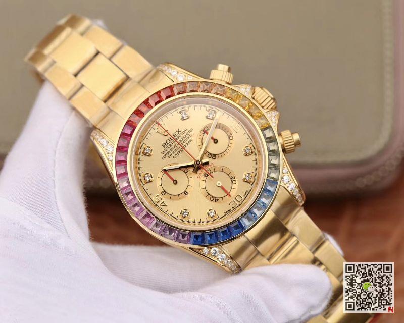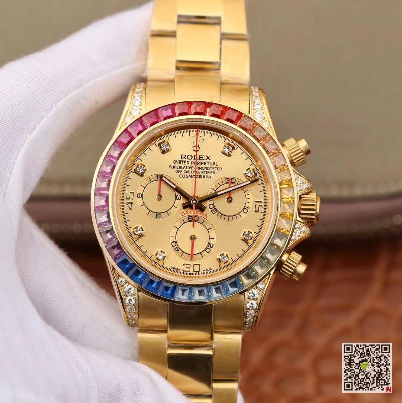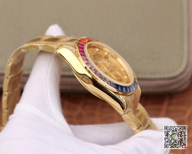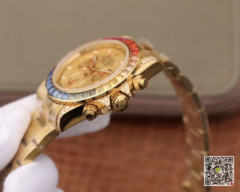 We sell the best Replica Rolex Daytona Cosmograph Rainbow 116598RBOW BL Factory Gold Dial fake watches, this is BL Factory by purchasing original replica Rolex Daytona series watches. If you are interested in wholesale replica Rolex watches, you can contact our online customer service and give the lowest wholesale price according to the quantity you need.