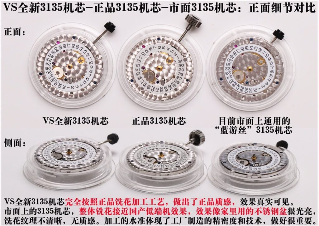 1. DanDong 3235 Movement: This one’s mainly used by VS Factory now. It’s a true integrated movement, mostly found in popular VS Factory Rolex models like the Datejust, Submariner, and Yacht-Master. For example, the VS Factory Rolex Datejust m126234-0037 is one of the hottest replica watches for daily wear this year, totally worth getting.