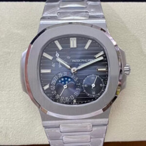 The Patek Philippe Nautilus 5711 is PPF’s signature model, the one that made them famous. Even now, updated to V4, it’s still selling out. The 40mm case, that not-quite-round octagonal bezel, the horizontal ribbed dial with its blue-black gradient – all the details that are easiest to spot as fake have been re-made for the V4. The dial uses more stable Japanese high-temperature ink, so under side light, you get the same dark blue to black transition as the original. The date window edge has added beveling and polishing. The numbers are laser-engraved and then filled with paint, so the font looks full and clean, no rough edges. The hands and hour markers still have that sharp, 3D cut, and the lume is even with no messy glue. The whole watch is about 8.3mm thick, within 0.1mm of the real one. A big part of that is PPF’s in-house 324 integrated movement. Not only is the rotor position and bridge finishing the same direction, but they even copied the shape of the swan’s neck regulator under the balance wheel. Looking through the display caseback, it’ll fool at least 90% of people at first glance. If you want something a bit more complicated than the basic three-hand, the 5980 chronograph is the next step up. PPF fitted this watch with their own CH 28-520 chronograph movement. They kept the 40.5mm case size, and included the single sub-dial at 6 o’clock, the date window at 3, and the central 60-minute chrono hand. Because they compressed the chronograph module, the whole watch is still just over 12mm thick, about 1.5mm thinner than the old add-on module method. In PPF factory Patek Philippe replica watch test, the button feel isn’t stiff, the chrono second hand resets with about 0.02 seconds error, so it doesn’t feel like a toy even with daily wear.