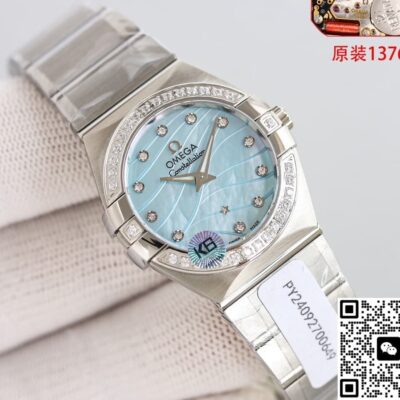 The Constellation series naturally carries meanings of protection and eternity. Combined with its rounded case shape and gentle luster, it easily brings to mind ideas of commemoration and companionship. This 3S Factory Omega comes with packaging identical to the boutique version, so the unboxing experience feels totally genuine. It’s also very versatile. The 27mm case size falls in that perfect sweet spot for most women’s wrists. It slides easily under shirt cuffs, knit sweater sleeves, and so on – it won’t get caught on a jacket cuff, and it’s not so small that it looks like a bracelet. The combo of ice-blue mother-of-pearl and white diamonds has a naturally cool tone. If you prefer gold, 3S Factory also offers a two-tone version. But many women friends actually prefer the full stainless steel model because it makes the diamonds look whiter and doesn’t steal their thunder.