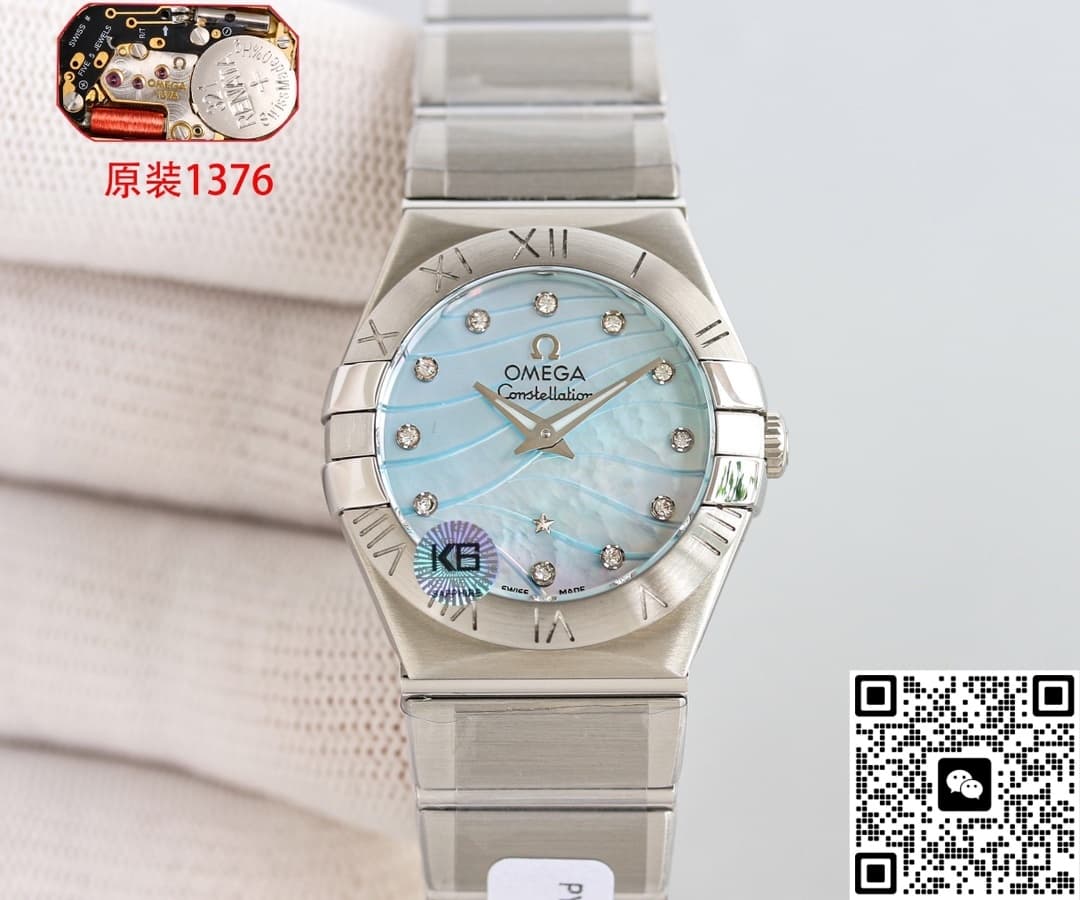 The Constellation series naturally carries meanings of protection and eternity. Combined with its rounded case shape and gentle luster, it easily brings to mind ideas of commemoration and companionship. This 3S Factory Omega comes with packaging identical to the boutique version, so the unboxing experience feels totally genuine. It’s also very versatile. The 27mm case size falls in that perfect sweet spot for most women’s wrists. It slides easily under shirt cuffs, knit sweater sleeves, and so on – it won’t get caught on a jacket cuff, and it’s not so small that it looks like a bracelet. The combo of ice-blue mother-of-pearl and white diamonds has a naturally cool tone. If you prefer gold, 3S Factory also offers a two-tone version. But many women friends actually prefer the full stainless steel model because it makes the diamonds look whiter and doesn’t steal their thunder.