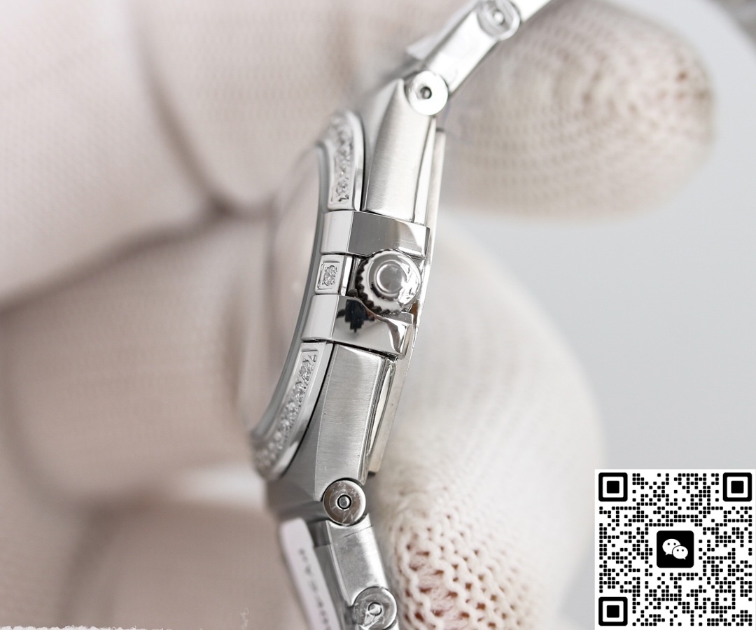 The Constellation series is super recognizable for Omega. Those four claws holding the bezel like little brackets, combined with the horizontal integrated bracelet – you can spot it from far away. 3S Factory kept all these classic design elements and polished every detail to a level that would satisfy even the pickiest person. The depth of the Roman numeral grooves on the bezel, the width of the bevel where the claws meet the case, the ratio of polished center links to brushed side links on the bracelet – it all matches the original. In natural light, the polished metal surfaces reflect highlights into a sharp, thin line, while the brushed parts have a soft, satin finish. This mix of shiny and matte makes the whole watch look freshly cleaned on your wrist at all times. For people who wear a watch daily, you don’t have to find the right angle – every casual gesture catches the eye with the combined sparkle of diamonds and metal.