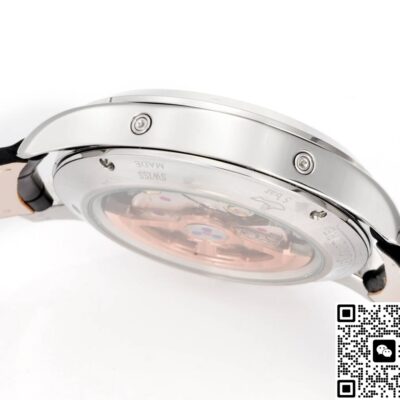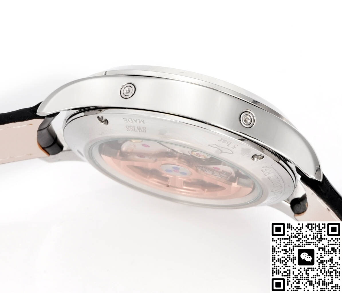Dress watches hate looking bulky, and a complete calendar with moon phase is the combo most likely to feel clumsy. 5C Factory’s solution was to perfectly align the dial layout. The weekday and month sit split at 12 o’clock, the central date hand is a slim baton with a tiny crescent moon at its tip, and the 6 o’clock moon phase window is small but uses a deep blue sky against a rhodium-plated moon for contrast. This keeps the whole dial breathing across all four quarters. Materials are where replicas often cut corners, but not here. This high-end clone version uses a one-piece 316L stainless steel case. The three-part construction (mid-case, bezel, case back) matches the original too. The sapphire crystal has anti-reflective coating on both sides—no cheap purple glare when you look from an angle. The crown’s grip is cut one by one with a CNC tool, polished on top with brushing in between, giving it a nice, precise feel when you wind it. The strap comes standard as Italian calf leather, pressed with an alligator pattern that’s not too loud. The back is lined with matching leather, so it won’t get smelly easily in summer sweat. Overall, this 5C Factory Jaeger moon phase is really well done and definitely worth considering.