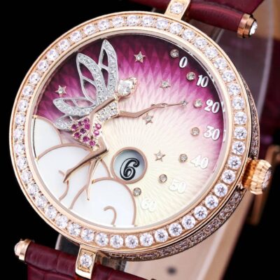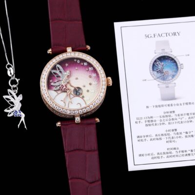 Wearing Van Cleef & Arpels’ fairy retrograde in daily life is a little secret wish for many girls. The 5G Factory Van Cleef & Arpels Poetic Complications VCARPBNJ00 replica watch brings fairy tales, jewelry, and mechanical fun right to our wrists with amazing value. Now, the fairy’s magic wand isn’t just a fantasy behind a display window—it’s a tiny theater you can see every time you lift your wrist.