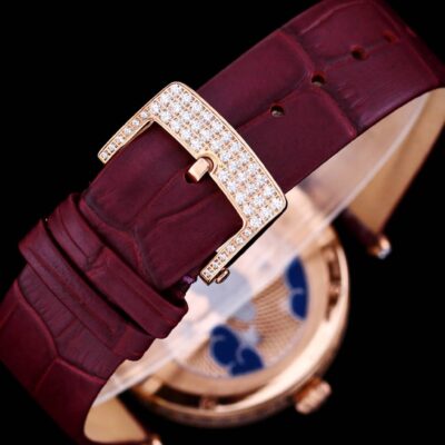 The first time I saw this Van Cleef & Arpels replica watch, I was blown away. The details are incredible. The dial has three layers. The bottom layer is 0.4mm Philippine white mother-of-pearl. 5G Factory first uses a lathe to engrave a sunburst guilloché pattern, creating a sunset-like texture. The beautiful fairy figurine at 8 o’clock has a base of 316L stainless steel, plated in rose gold. The fairy’s wings were the hardest part to copy. 5G Factory’s solution uses titanium sheets and transparent enamel. They laser-cut the titanium sheet to keep the leaf vein texture, then hand-select and apply five layers of transparent enamel. The final result: wings that are see-through but not fragile.