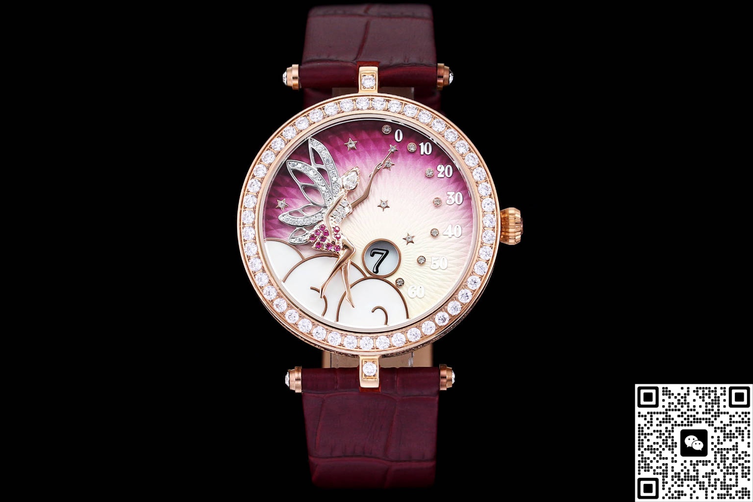 Wearing Van Cleef & Arpels’ fairy retrograde in daily life is a little secret wish for many girls. The 5G Factory Van Cleef & Arpels Poetic Complications VCARPBNJ00 replica watch brings fairy tales, jewelry, and mechanical fun right to our wrists with amazing value. Now, the fairy’s magic wand isn’t just a fantasy behind a display window—it’s a tiny theater you can see every time you lift your wrist.