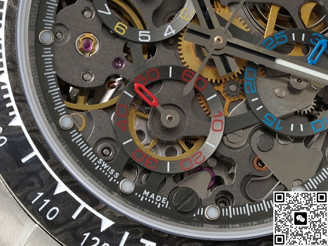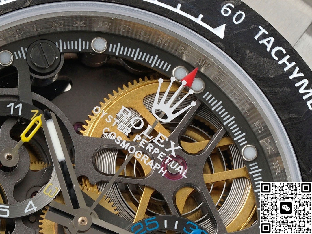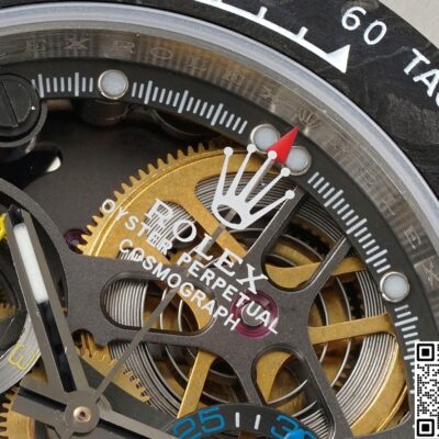 - Noob factory Rolex Daytona Cosmograph 116519LN 904L stainless steel replica watch adopt newly customized edition Rolex Daytona exclusive cal.4130 automatic winding movement which thickness is consistent with genuine. So that the watch can 100% realize all functions of genuine, and unprecedentedly use customized edition KIF shock absorber. And the whole machine is designed according to real Cal.4130 movement, the three-layer basilar plate that from chamfer to solar pattern are completely 1:1 respect original factory design. This watch not only is superior than all duplicates of Rolex Daytona in the market, but also the only replica that can compete with authentic Rolex Daytona.