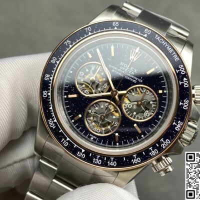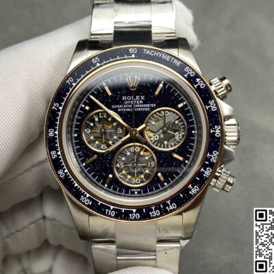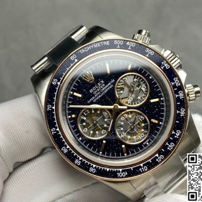 What’s it like to wear the galaxy on your wrist? The ADG Factory Rolex Daytona Ventura replica watch with its aventurine dial gives us the answer. It takes Rolex’s bestselling chronograph, the Daytona, as its canvas, then sets the entire dial and bezel with deep blue-gold natural aventurine stone. This adds a layer of night-sky romance to the watch’s originally sporty, racing-inspired silhouette. At first glance, the floating copper mineral sparkles inside the dark blue glass are like a miniaturized star cluster. When light sweeps across it, the whole dial comes alive—as if someone compressed the night sky into 40 millimeters. What’s most captivating is perhaps its uniqueness. Because aventurine is a natural material, each piece has a different pattern distribution. That means if you own one, the arrangement of its “stars” is truly one-of-a-kind. This uniqueness is the gift from ADG Factory—a natural imprint made just for you.