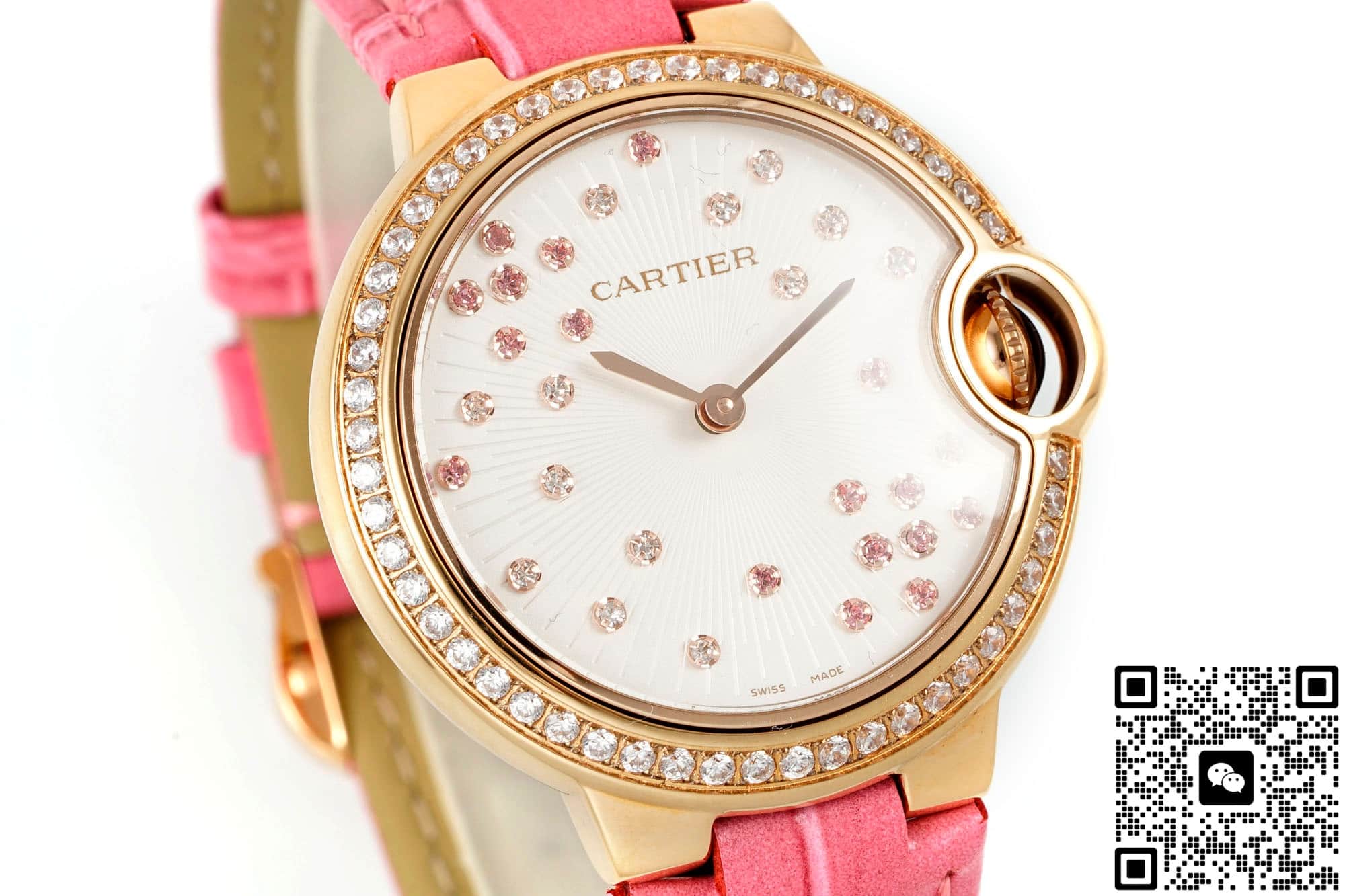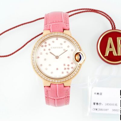 The AF Factory Cartier Ballon Bleu WJBB0087 Qixi Festival special edition replica watch is a rare holiday limited version in the replica market in recent years. It packs the Ballon Bleu’s signature roundness, elegance, and romantic genes into a 33mm size, then uses rose gold and pink sapphires to tell us this is a watch for lovers. Many people see it for the first time and instinctively put it in the women’s watch category, but when you actually wear it, you realize it’s more like a unisex mood accessory—gentle, shiny, but with a bit of controlled flair. What AF Factory did with this replica isn’t just a simple copy of the shell; they brought over the whole captivating vibe of the genuine piece.