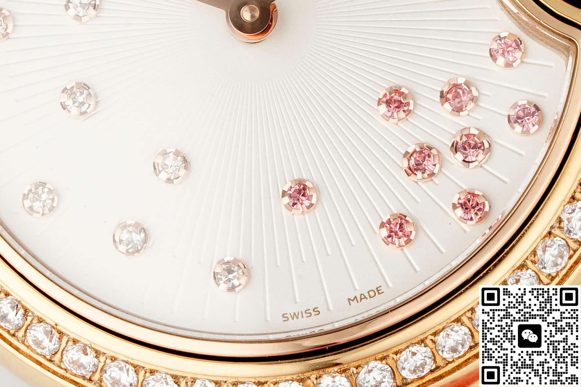 The Ballon Bleu’s pebble-shaped case has long been one of its most recognizable features. AF Factory kept this perfectly. The curves where the case and lugs meet are very smooth. The mirror polish lets light slide all the way from the gold surface to the bracelet, with no sharp edges. AF Factory’s rose gold tone is more subtle compared to common rose gold—it looks bright on Asian skin but isn’t too flashy. The 47 round diamonds on the bezel aren’t glued on like in low-end replicas; they’re set with metal claws. Each diamond sits slightly higher than the bezel, so when you move your wrist, the facets catch even weak light—really eye-catching.