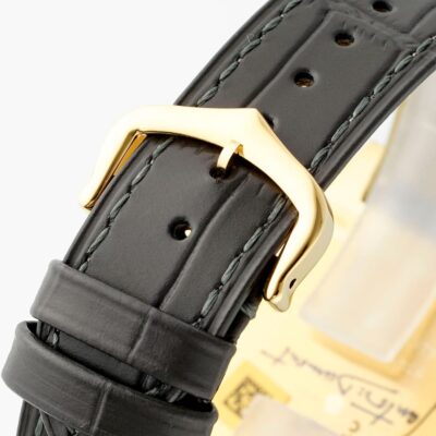 The watch strap is made of leather material. It’s very soft and lightweight, not like other metal straps that feel heavy. Leather straps always give an elegant, relaxed appeal, instantly boosting the watch’s sense. It’s comfortable to wear and fits the wrist curve well. As you wear it over time, the wrinkles that develop on the strap don’t look cheap or odd. Instead, they highlight the personal, unique style that comes with wear and tear, making it look very textured.