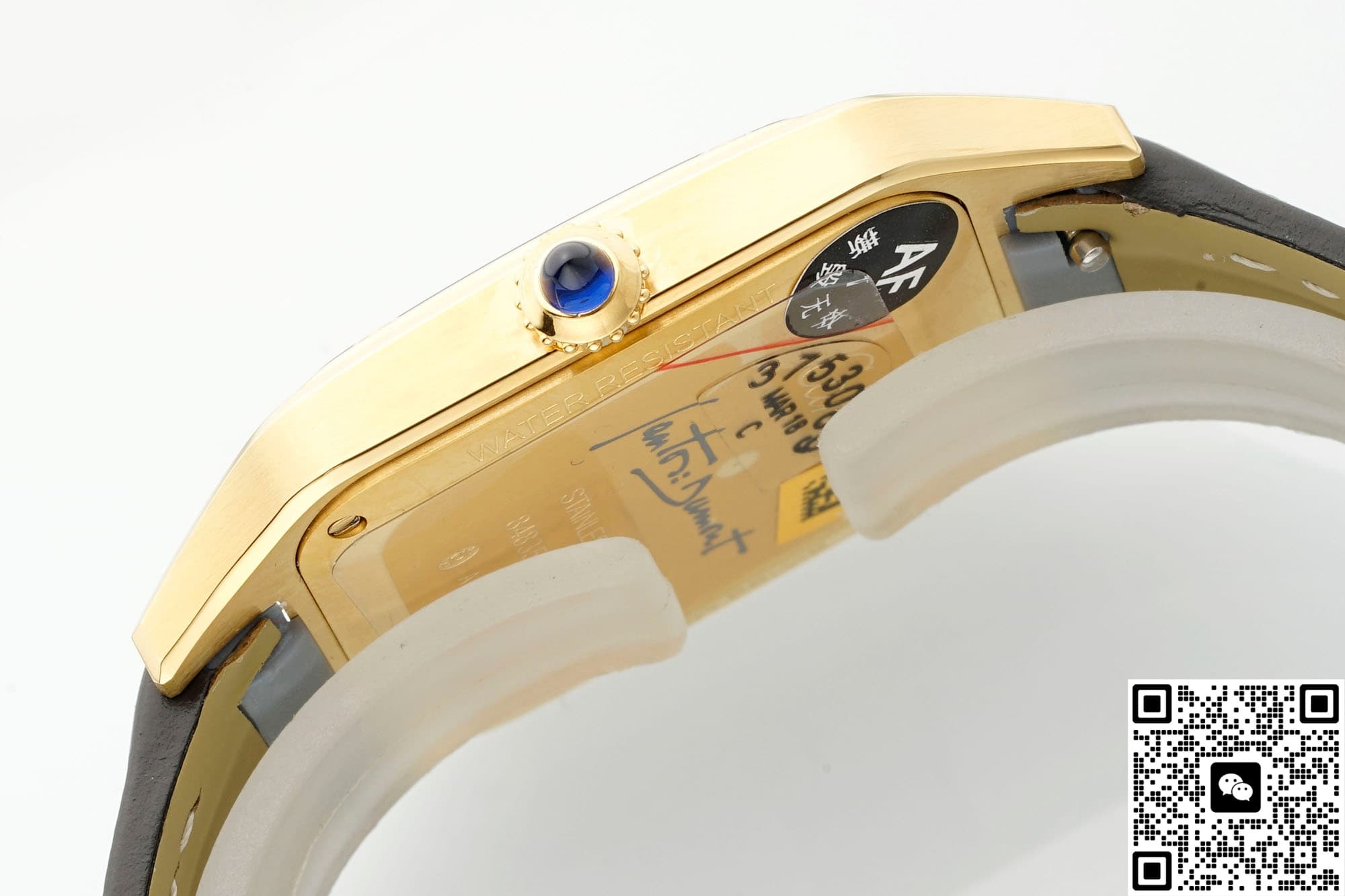 After testing, this Cartier watch’s case and bezel are made of stainless steel. The bezel and lug edges use gold-plating to achieve the original look. Stainless steel is strong and wear-resistant, and its hardness is higher than ordinary stainless steel. Daily bumps and friction during wear won’t easily leave scratches on it.
