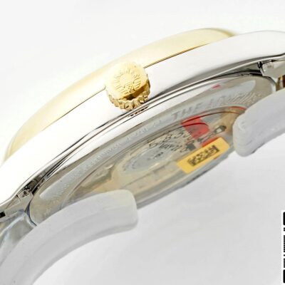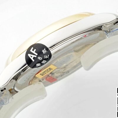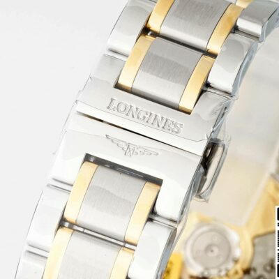 The golden stainless steel bezel is polished. When light hits it, it gives off a beautiful shine. The crown is well made, and the edges of the gears don’t feel sharp when you touch it. The case has clear brushing, and it feels smooth to the touch. The two-tone bracelet is beautiful, with a mix of polished and brushed finishes. The links are cleanly finished with no rough edges. The clasp is made of stainless steel, and the logo and text on it are deeply engraved with a nice 3D effect. The case back has a see-through design, so you can see the movement inside, which makes the watch more interesting to look at. Overall, from the outside, this AF Factory Langines watch is very close to the original. They paid a lot of attention to the details, so I’d say it’s a very successful replica watch.