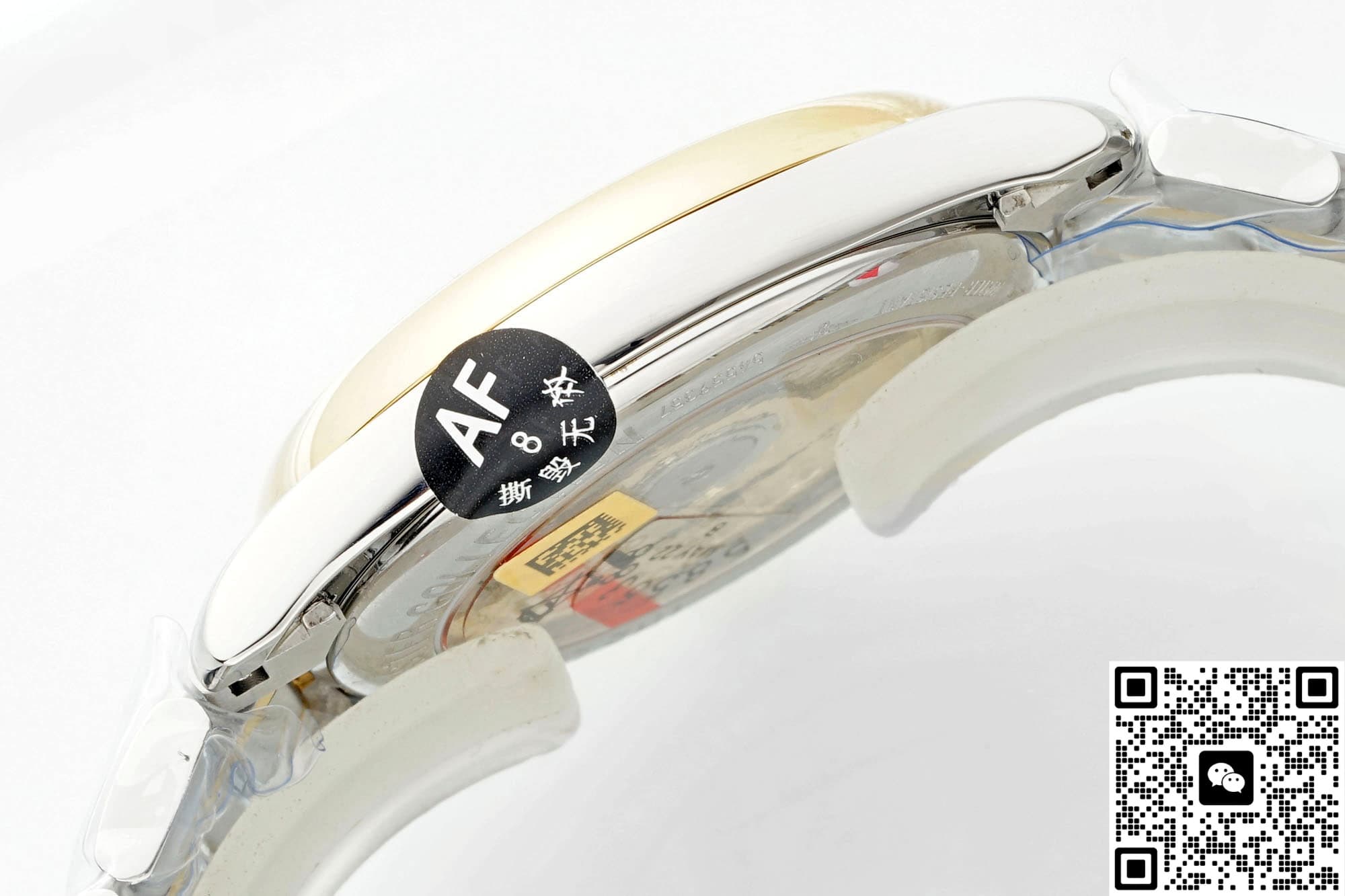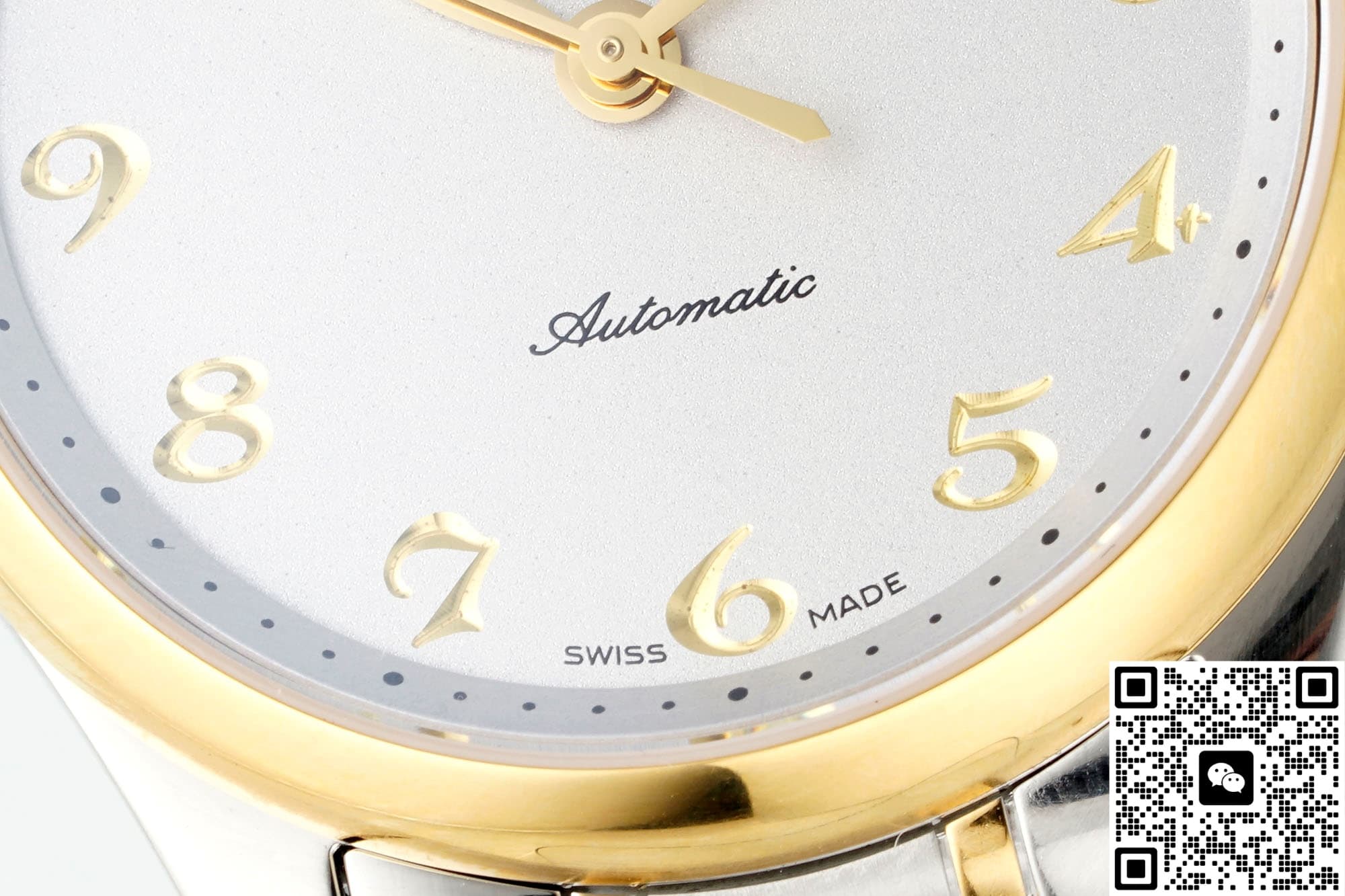 Today I’ve got this Langines Master collection watch, model L2.357.5.72.7, from AF Factory. AF Factory is one of the best makers out there for Langines replica watches, especially for the Master and Heritage series. Unlike some factories that make all kinds of brand watches, AF Factory focuses mainly on a few popular Langines series. That’s why their watches have better details and are closer to the original. When I first saw this watch, I was really impressed by its quality. The two-tone bracelet with the silver-white dial gives off an elegant and classy vibe. It’s a ladies’ watch, 34mm in size, which is just right. It’s perfect for daily wear, like for going to work every day. The watch is very thin, so it doesn’t feel heavy on the wrist, and it’s really comfortable to wear. Let’s take a closer look at how this AF Factory watch performs.