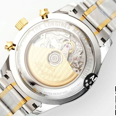 A lot of people worry that Longines replica watches might look the part but won’t hold up. But honestly, there’s no need to worry. AF Factory uses the same material specs as the genuine. The case and bracelet are mainly 316L stainless steel, which resists daily sweat and rain just fine. The sapphire crystal is a 9 on the Mohs hardness scale – keys won’t scratch it. The crown has a blue resin cabochon on top, matching the blued hands and adding grip. It has 30 meters water resistance, okay for hand-washing or getting caught in rain, but not for swimming or soaking. The rose gold plating is about 8 microns thick. With normal wear, you might see slight wear on the edges after one or two years. If you take good care of it, it can last over three years without fading. Besides performance and materials, what AF Factory’s eight-hand moon phase clone really nails is a psychological point: recognition. The two-tone color scheme and the eight-hand layout make it instantly identifiable, but without the worry of damaging an expensive piece. At just over three hundred dollars, finding a mechanical watch with full calendar, chronograph, moon phase, and 24-hour display is rare. Plus, with case and clasp parts that can interchange with the genuine, it becomes many people’s first dress watch when getting into mechanical complications. Even if you get tired of wearing it in a few years, keeping it in the box as a nostalgic piece to take out and admire occasionally – the sight of those eight hands moving together is still captivating.