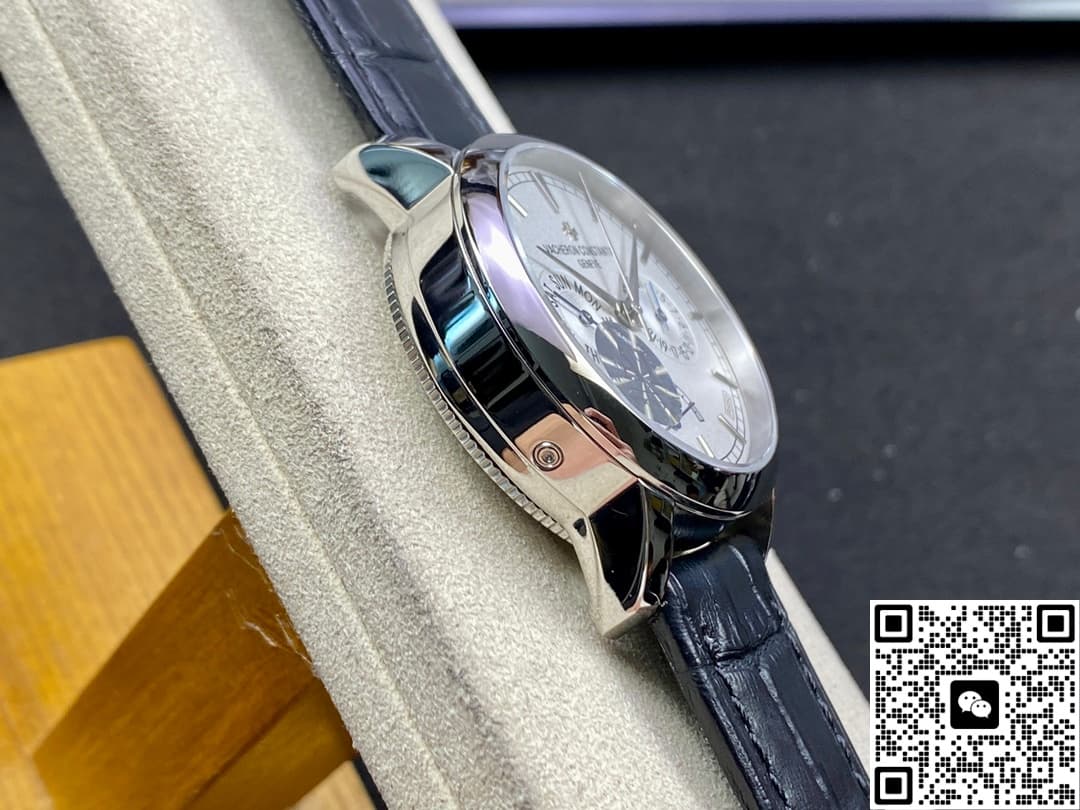 To achieve the look and feel of the original 950 platinum, the case and bezel of this Vacheron Constantin use 316L stainless steel. Their appearance is similar, both showing a silver-white metallic luster. The polishing of the bezel and case is very fine. Under different lights, as your wrist moves, it reflects a cool metallic shine, looking especially refined and high-end. Stainless steel is sturdy and durable. It’s not easy to get scratched during daily wear. It has good corrosion resistance. Contact with water or sweat is less likely to cause rust. This means we can use and keep it for a long time. Most importantly, maintenance is also very convenient. Just wipe gently with a soft cloth. Subsequent upkeep and repair costs are also reasonable.