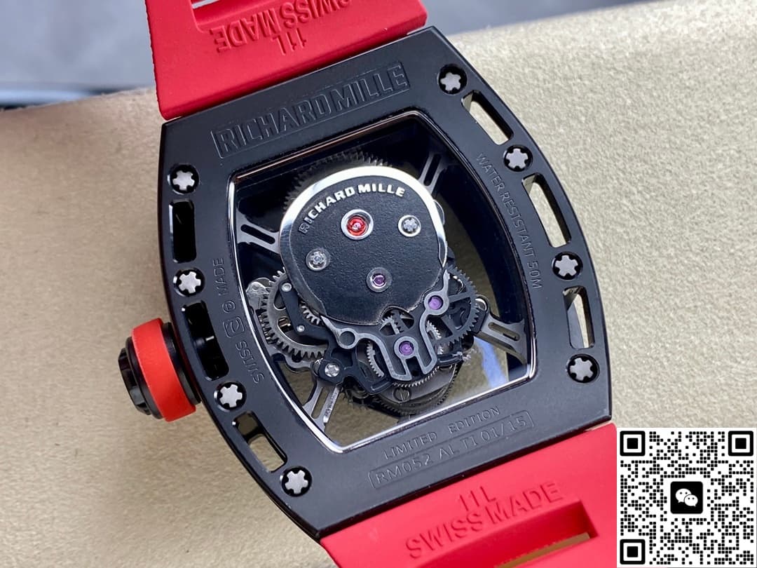 AMG Factory Richard Mille Tourbillon RM052 Barrel-shaped Case Replica watch For Sale, it is a watch made by replicating the various parts of the genuine watch according to 1:1 mold opening, that is, a replica watch. Its design, materials, and workmanship will strictly imitate the authentic manufacturing. This kind of watch has many advantages such as high simulation degree, fine workmanship and stable performance. Most replica watches can also achieve all the functions of the original watch, which is why many replica watches can be exported overseas. If you are looking to buy a high imitation watch, then this AMG Factory Replica Richard Mille Tourbillon RM052 Barrel-shaped Case is a very good choice.