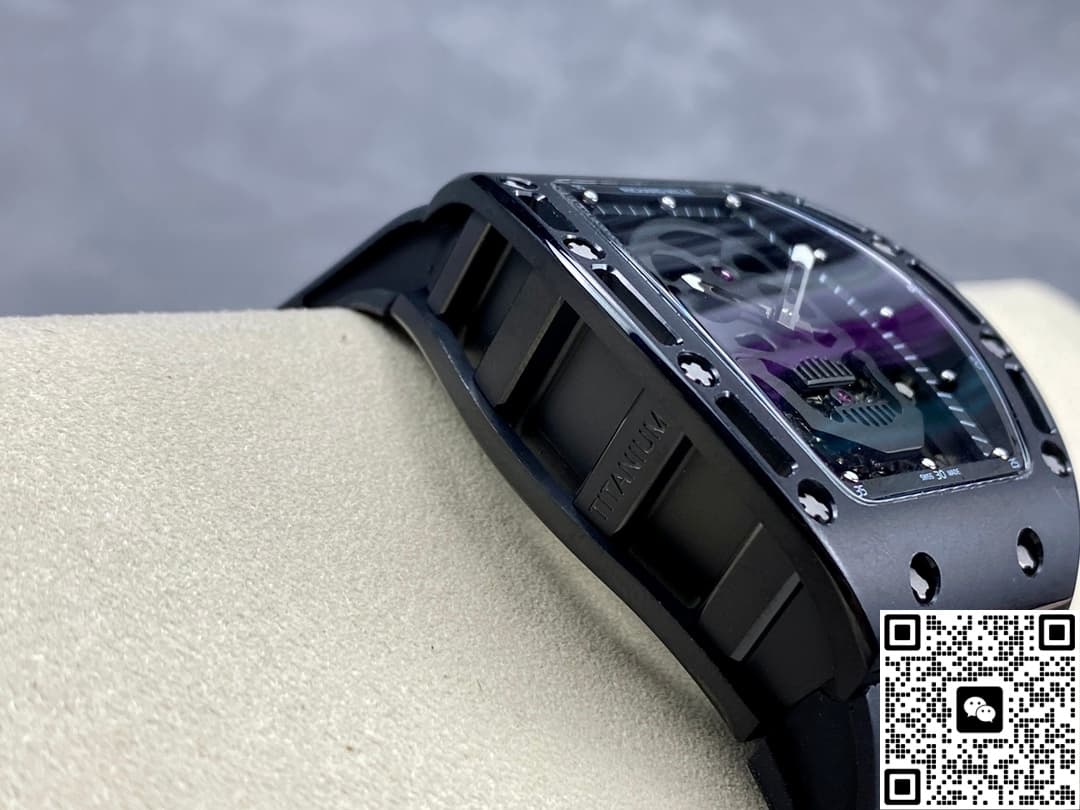 - Replica Richard Mille RM67-01 automatic winding watch has delicate size and wine barrel shape case, and not only has the best classic modelling, but also is slim and moderate. The numeral time markers especially made of solid metal, contrast with exquisite hollowing movement to set off the watch being deep and complex. The Richard Mille RM67-01 watch is slim, simple and light, deep, complex and overlap, that is become the perfect choice which can compare to genuine.The size of the case is 38.7 mm x 47.5 mm , and the thickness is 13mm. The Richard MIlle RM67-01 adopt superior rubber strap which is superstrong waterproof and anticorrosion, and this kind of strap is a necessary strap for you to wear in summer.