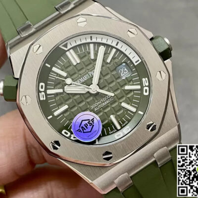 What is a replica watch? To put it simply, it is a watch made by replicating the various parts of the genuine watch according to 1:1 mold opening, that is, a replica watch. Its design, materials, and workmanship will strictly imitate the authentic manufacturing. This kind of watch has many advantages such as high simulation degree, fine workmanship and stable performance. Most replica watches can also achieve all the functions of the original watch, which is why many replica watches can be exported overseas. If you are looking to buy a high imitation watch, then this APS Factory Audemars Piguet Royal Oak Offshore 15710ST.OO.A052CA.01 Green Strap is a very good choice.