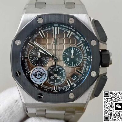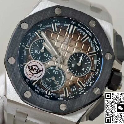 Today we’ve got this Audemars Piguet Royal Oak 26420SO.OO.A600CA.01 with a black ceramic bezel from APS factory. The craftsmanship of APS factory replica watch has really matured. As soon as you hold this piece, you can feel the quality—it’s clear they put real effort into it. This is a multi-function chronograph watch, with a sporty-casual style. The look is really attractive, has that heavy-duty mechanical vibe. Right now, APS factory’s version is the best and most accurate one you can find on the market. Let’s see how it performs.