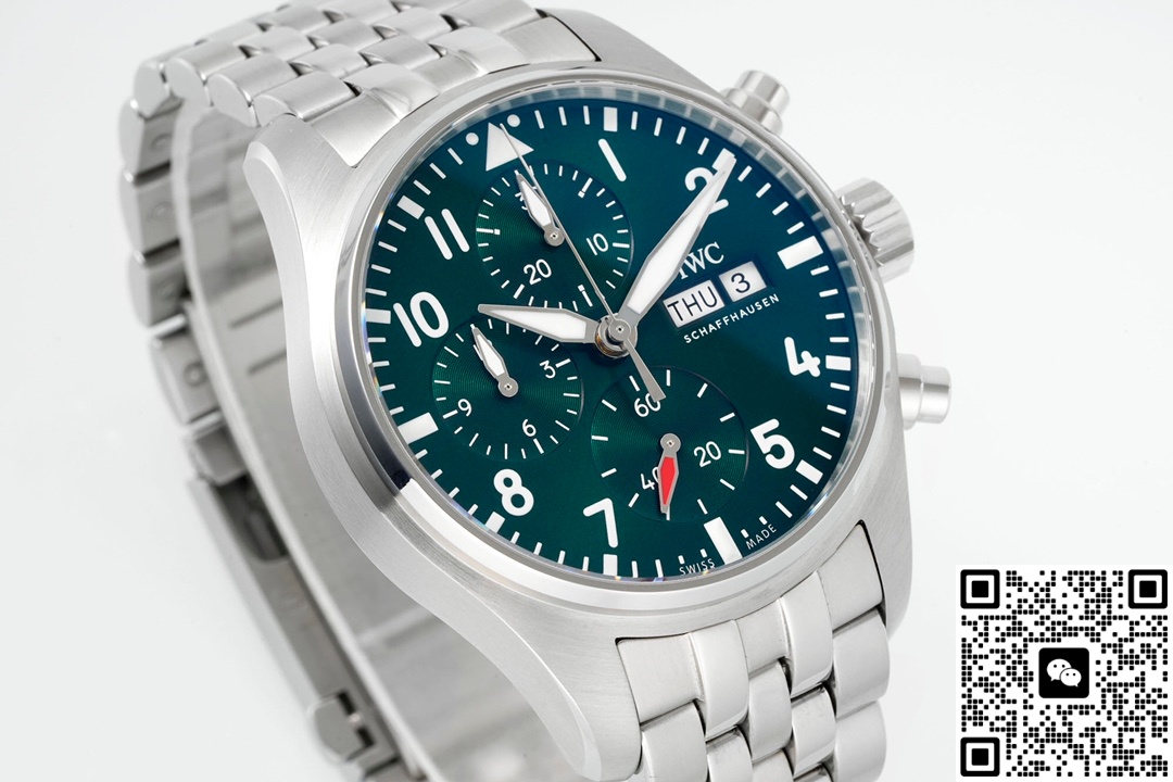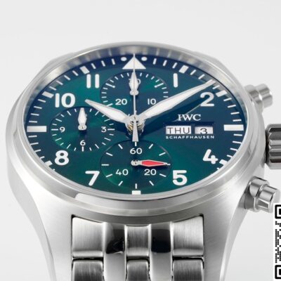 Green dial is not rare in watches, but pilot series rarely uses it, because military blood likes black and white. In 2021 IWC brought olive green into the 41 mm pilot chrono, once you match it with flight jacket, it writes both vintage and fashion into the base color. APS Factory did not change the color on its own, instead it sent the whole original dial and outer scale into a spectrophotometer, wrote the green hue, brightness and saturation into numbers, then asked the ink factory to sample by LAB value, ran eight rounds before locking the color. Under noon sun it shows a yellow-tinted mint green, under indoor light it sinks into pine green. To make the color deeper, APS Factory first plated the brass base with nickel for anti-rust, then cut sunburst at 0.08 mm tool pitch, then sprayed six layers of ink, after stacking, light refracts many times on micro level, so you get a fine but not loud silk shine. Numerals and diamond hands are filled with Swiss C3 lume, after ten seconds of light they glow cold blue, very handy for friends outside at night.
