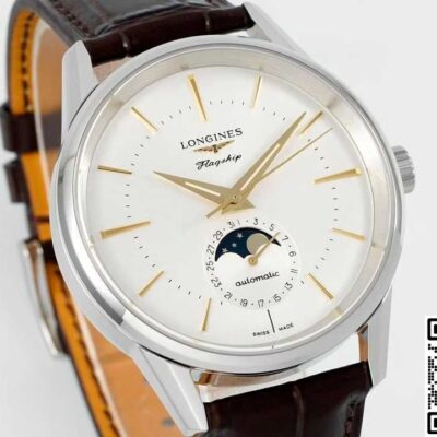 APS Factory Longines Flagship L4.815.4.78.2 Moon Phase Replica watch For Sale, it is a watch made by replicating the various parts of the genuine watch according to 1:1 mold opening, that is, a replica watch. Its design, materials, and workmanship will strictly imitate the authentic manufacturing. This kind of watch has many advantages such as high simulation degree, fine workmanship and stable performance. Most replica watches can also achieve all the functions of the original watch, which is why many replica watches can be exported overseas. If you are looking to buy a high imitation watch, then this APS Factory Replica Longines Flagship L4.815.4.78.2 Moon Phase is a very good choice.