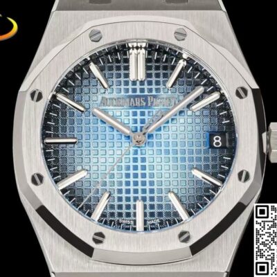 APW Factory Audemars Piguet Royal Oak 15510BC.OO.1320BC.02 Smoked Blue Dial Replica watch For Sale, it is a watch made by replicating the various parts of the genuine watch according to 1:1 mold opening, that is, a replica watch. Its design, materials, and workmanship will strictly imitate the authentic manufacturing. This kind of watch has many advantages such as high simulation degree, fine workmanship and stable performance. Most replica watches can also achieve all the functions of the original watch, which is why many replica watches can be exported overseas. If you are looking to buy a high imitation watch, then this APW Factory Replica Audemars Piguet Royal Oak 15510BC.OO.1320BC.02 Smoked Blue Dial is a very good choice.