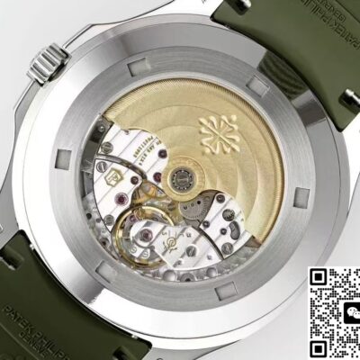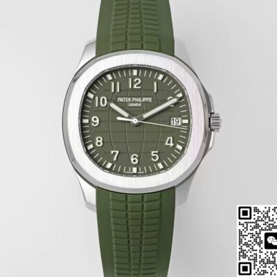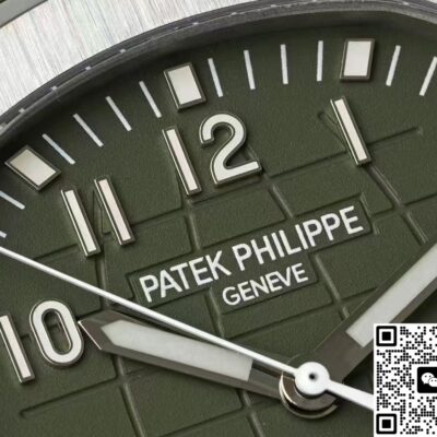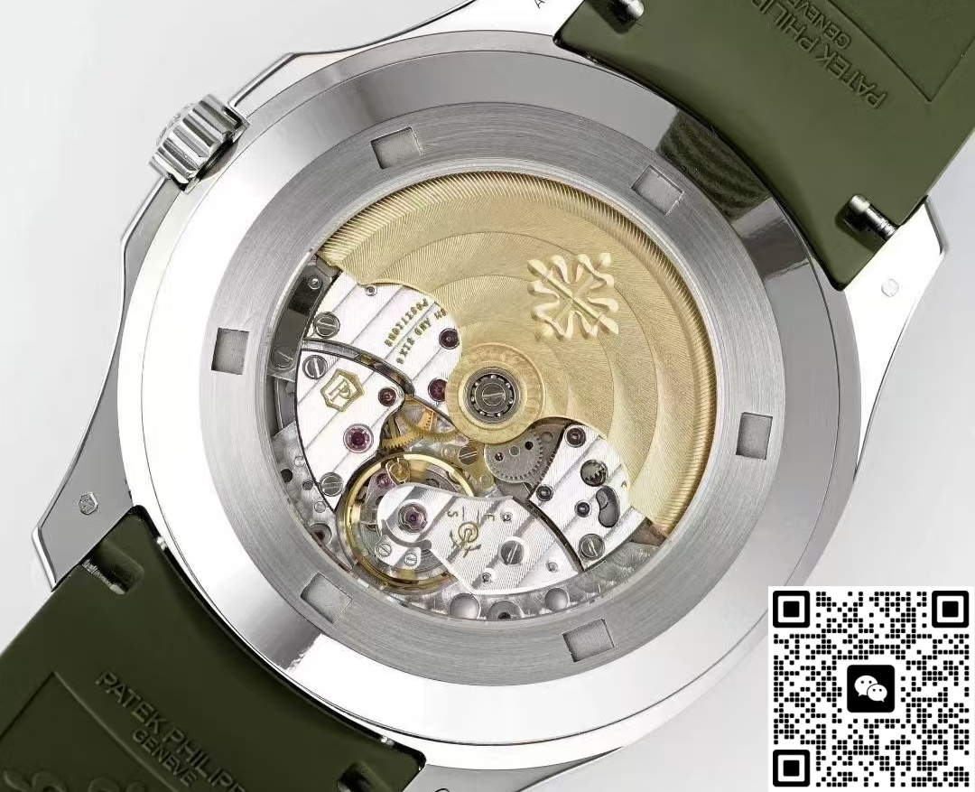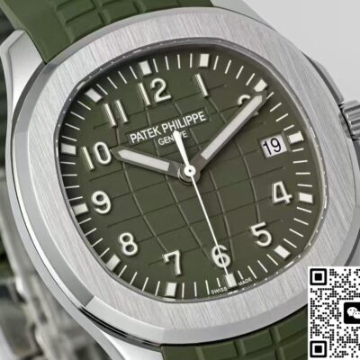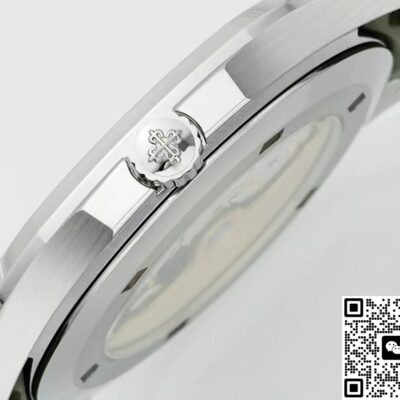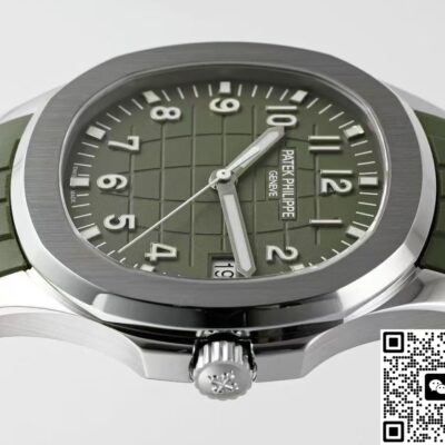 Today I’ve got this Patek Philippe Aquanaut 5168G-010 watch from APW factory. The Aquanaut series looks a bit like the Nautilus series. But the Aquanaut dial doesn’t have those “ears,” the lines are softer. The Nautilus case has obvious “ear” shapes, looks more tough. That’s one way to tell them apart. Also, the Aquanaut dial mostly uses Arabic numeral hour markers, while the Nautilus usually has stick hour markers. The most important point is, the Aquanaut strap is mostly rubber, feels more young and casual. The Nautilus often uses stainless steel or precious metal bracelets, more suitable for formal occasions. This watch comes in khaki green, you can also call it avocado green. At first glance it looks fresh, gives a spring vibe. Wears really nicely on the wrist. The whole watch feels high quality. Now let’s check out the details and finishing of this Patek Philippe replica watch.