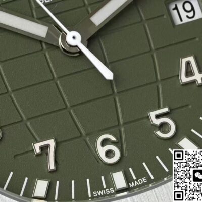 The original version uses 18K white gold for the crown, case, and clasp. But this APW factory replica uses stainless steel. You can see clear brushing and polishing on the dial, looks really beautiful. The strap is made of green rubber, uses composite waterproof material, good water resistance. Good for wearing while swimming in summer. The strap has the classic Aquanaut embossed pattern, matches the pattern on the dial, nice connection. And it can be cut. So people with smaller wrists can also wear it. The diameter of this APW watch is 42mm, same as the original. This size also suits women, won’t look odd.