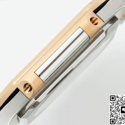 The rose gold case has a very clear brushed finish on the front—it feels premium. The sides of the case are cleanly sculpted with sharp lines. This watch comes with a two-tone bracelet. The gold parts in the middle are polished, so they’re shiny, while the other sections have a matte finish. The edges of each link are smooth, so it doesn’t feel rough on the wrist. I think APW factory nailed this detail—it’s very close to the original. The bracelet bends easily and fits the wrist comfortably, so it’s really nice to wear. Also, the case is pretty thin, so it won’t get caught on your sleeve.