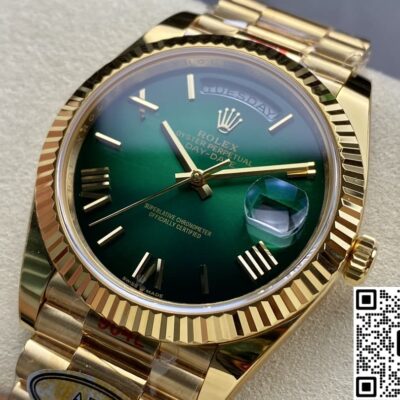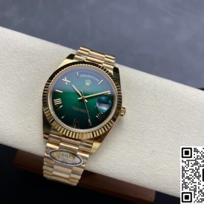AR Factory Rolex DayDate m228238-0069 Gradient Green Replica watch For Sale, it is a watch made by replicating the various parts of the genuine watch according to 1:1 mold opening, that is, a replica watch. Its design, materials, and workmanship will strictly imitate the authentic manufacturing. This kind of watch has many advantages such as high simulation degree, fine workmanship and stable performance. Most replica watches can also achieve all the functions of the original watch, which is why many replica watches can be exported overseas. If you are looking to buy a high imitation watch, then this AR Factory Replica Rolex DayDate m228238-0069 Gradient Green is a very good choice.