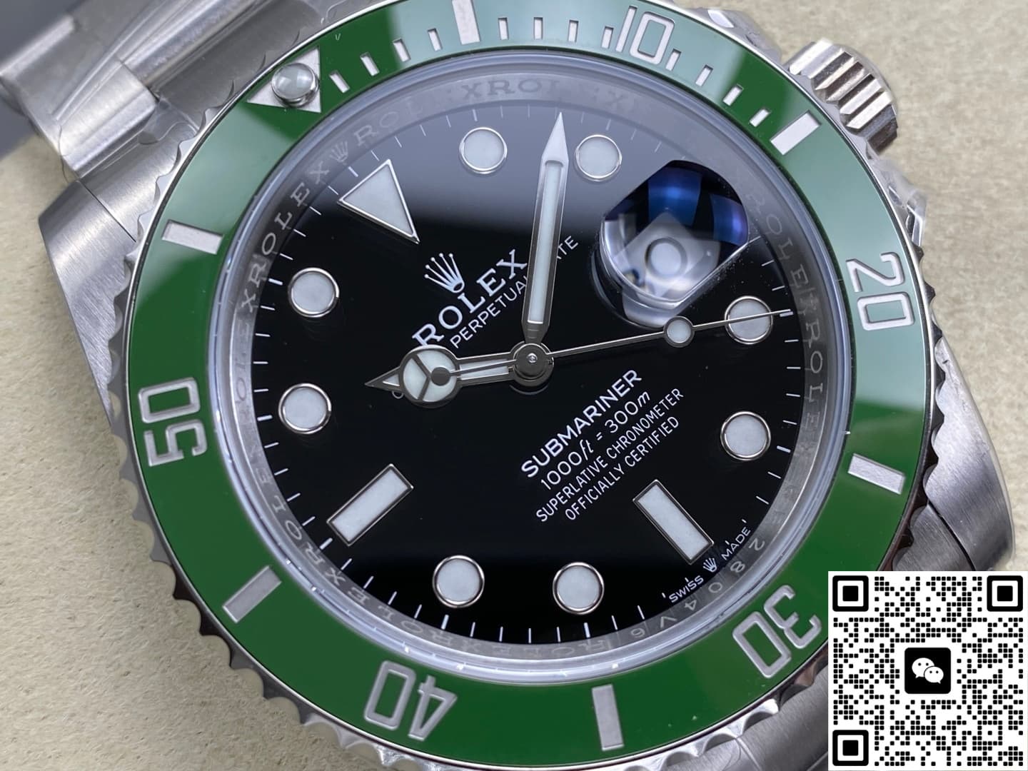 The vibrant green ceramic bezel shifts from a lime-green to a deep jade color under different lighting. It’s more eye-catching than a black bezel but more understated than a gold one. It hits that sweet spot between flashy and restrained. It can hold its own in a business meeting just as well as it can be the star of your poolside vacation photos. Green is a tough color to get right – get the ceramic mix wrong and it can look too yellow or too gray. ARF factory uses high-purity zirconium oxide powder, fired at 1650°C for 6 hours. The finished bezel has a hardness of 1200 Vickers. The markings are laser-cut, then filled with real platinum using a vacuum PVD process. Only the grooves keep the precious metal; the top surface is shaved flat with a diamond tool. In sunlight, it’s a mix of silver and green; under night lights, it’s a dark green with silver accents. It looks legit from any distance. Even after three years, the markings stay bright white with no yellowing, which is a big relief for perfectionists. The bezel’s edge teeth have been re-molded too – the peaks are sharper, the valleys deeper. Turning it gives clear, tactile clicks with a satisfying sound. The feel is smoother than the last version but not loose at all. You can easily line up the marker with one hand, which is super handy for diving timing or just checking the time.