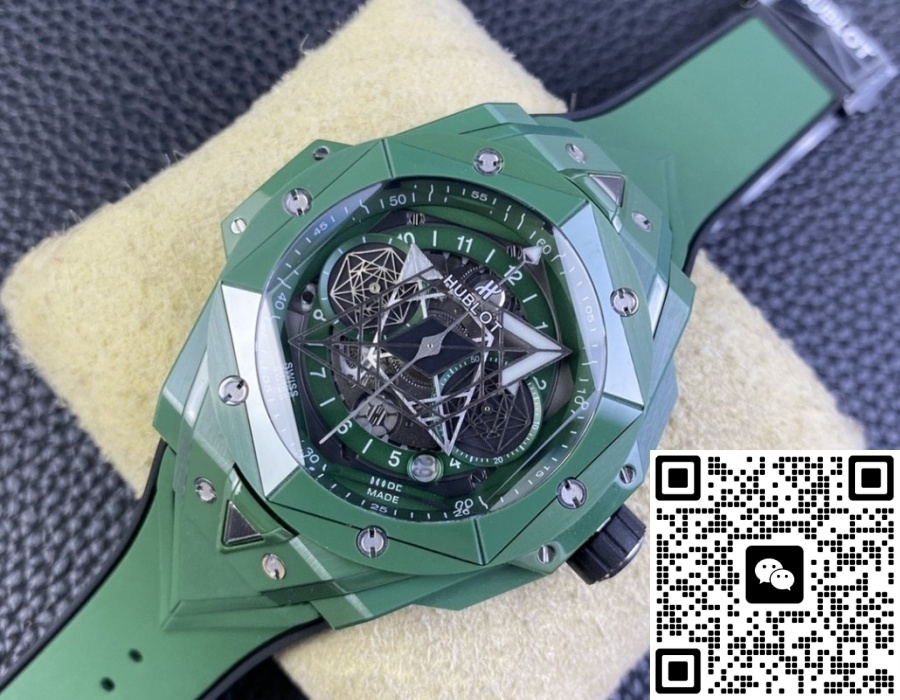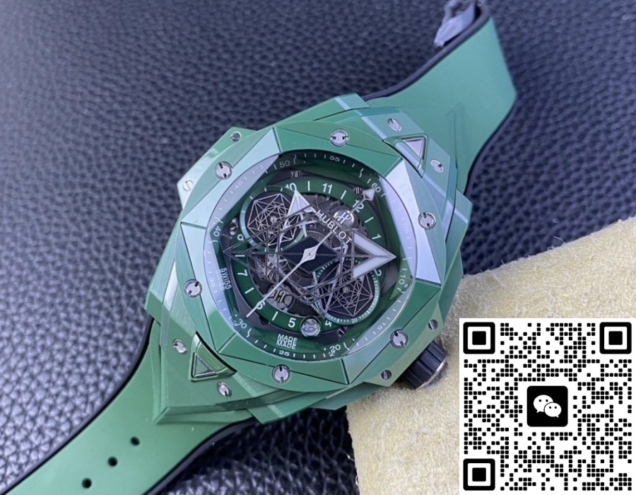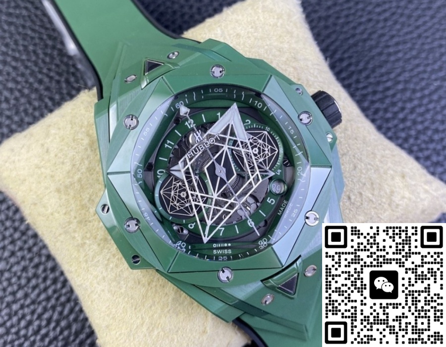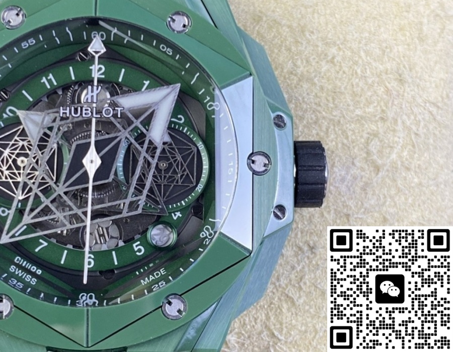 BB Factory Hublot BIG BANG 418.GX.5207.RX.MXM22 Green Ceramics Replica watch For Sale, it is a watch made by replicating the various parts of the genuine watch according to 1:1 mold opening, that is, a replica watch. Its design, materials, and workmanship will strictly imitate the authentic manufacturing. This kind of watch has many advantages such as high simulation degree, fine workmanship and stable performance. Most replica watches can also achieve all the functions of the original watch, which is why many replica watches can be exported overseas. If you are looking to buy a high imitation watch, then this BB Factory Replica Hublot BIG BANG 418.GX.5207.RX.MXM22 Green Ceramics is a very good choice.