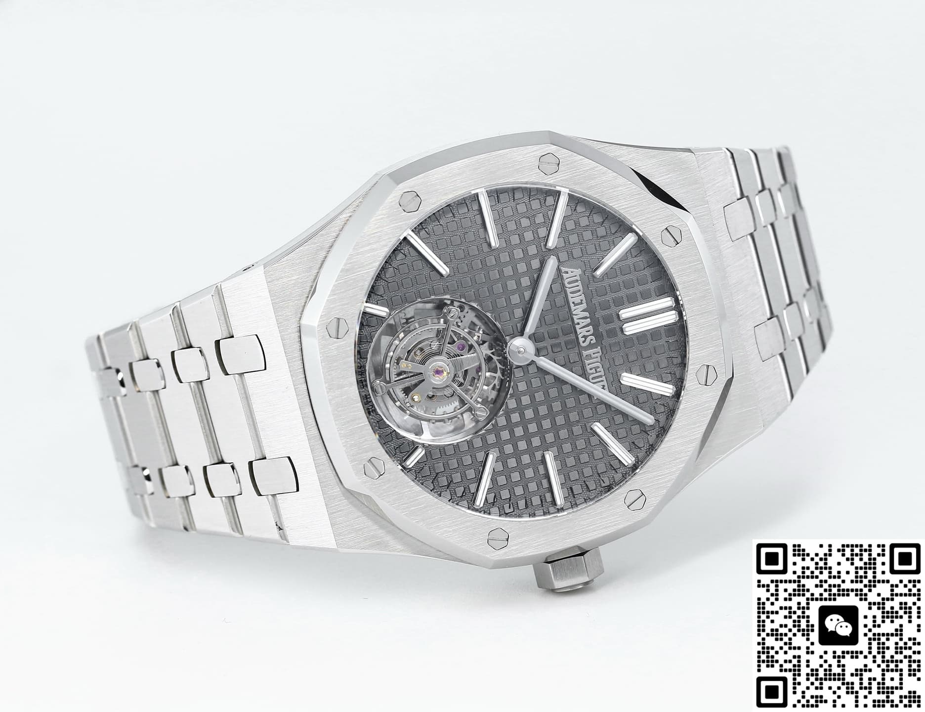 BBS Factory Audemars Piguet Royal Oak Tourbillon 26730ST.OO.1320ST.06 Replica watch For Sale, it is a watch made by replicating the various parts of the genuine watch according to 1:1 mold opening, that is, a replica watch. Its design, materials, and workmanship will strictly imitate the authentic manufacturing. This kind of watch has many advantages such as high simulation degree, fine workmanship and stable performance. Most replica watches can also achieve all the functions of the original watch, which is why many replica watches can be exported overseas. If you are looking to buy a high imitation watch, then this BBS Factory Replica Audemars Piguet Royal Oak Tourbillon 26730ST.OO.1320ST.06 is a very good choice.