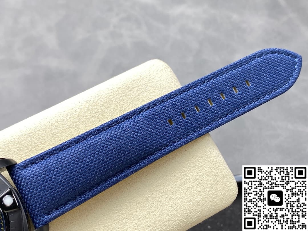 The dial design is really distinctive. The blue BLS Factory tuned is a cold shade between steel blue and cobalt. Three black sub-dials are sunk in, paired with bright yellow accents. The small seconds at 9 o’clock is made into a separate twelve-sided badge. The tachymeter scale also uses black and yellow contrast. The whole visual effect is stunning. The lume is just right—during the day, I hardly notice there’s lume on the watch. Only at night, a layer of even green glow floats up. I like resting my wrist on top of the steering wheel on late-night drives, watching that cold light slowly brighten, like everything’s under control. The strap matches the color scheme too—BLS Factory’s blue and yellow woven nylon strap goes with the dial. Feels like Kevlar when you rub it, with that sandy sound, but even softer. Wears really comfortable.