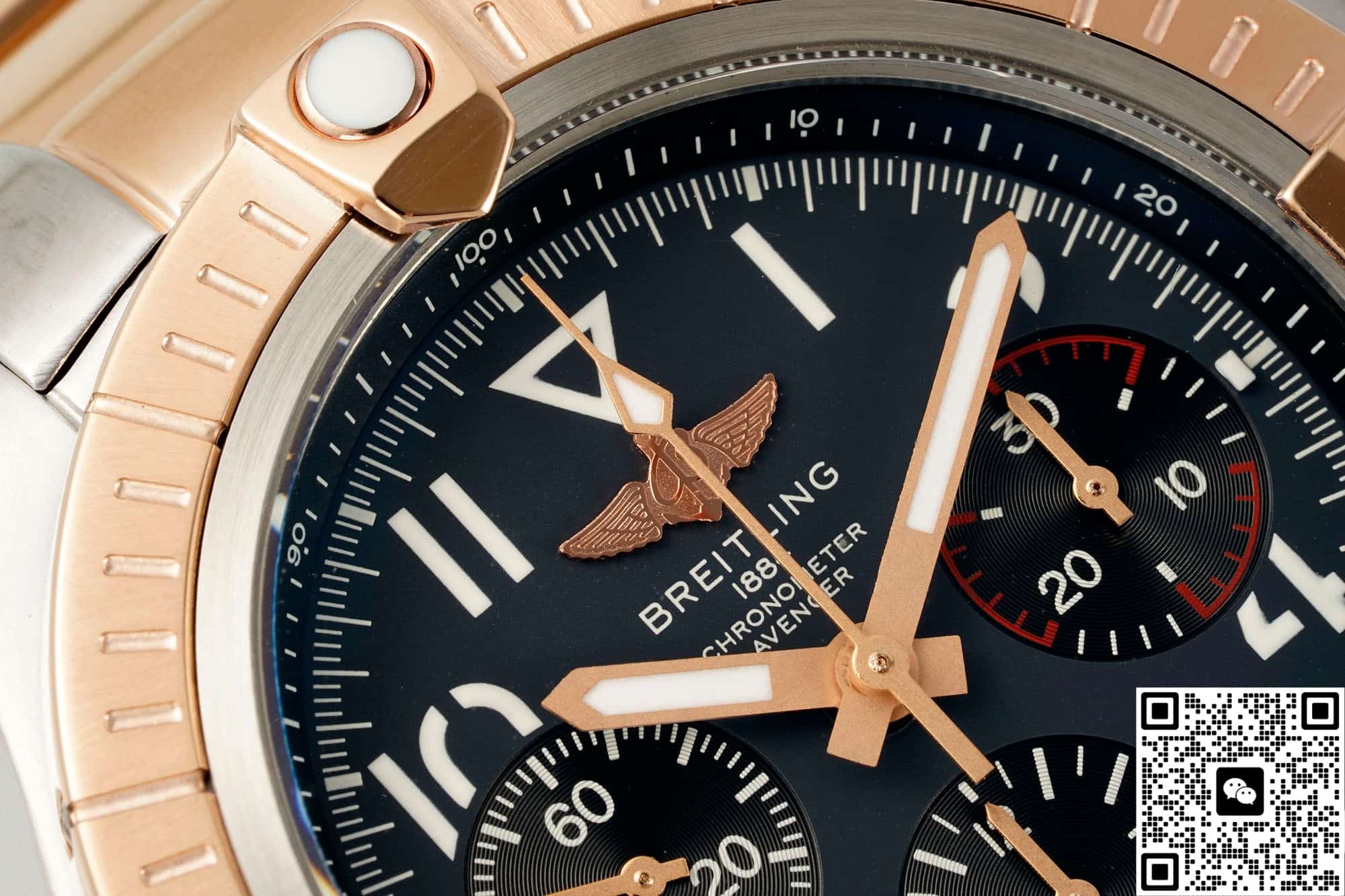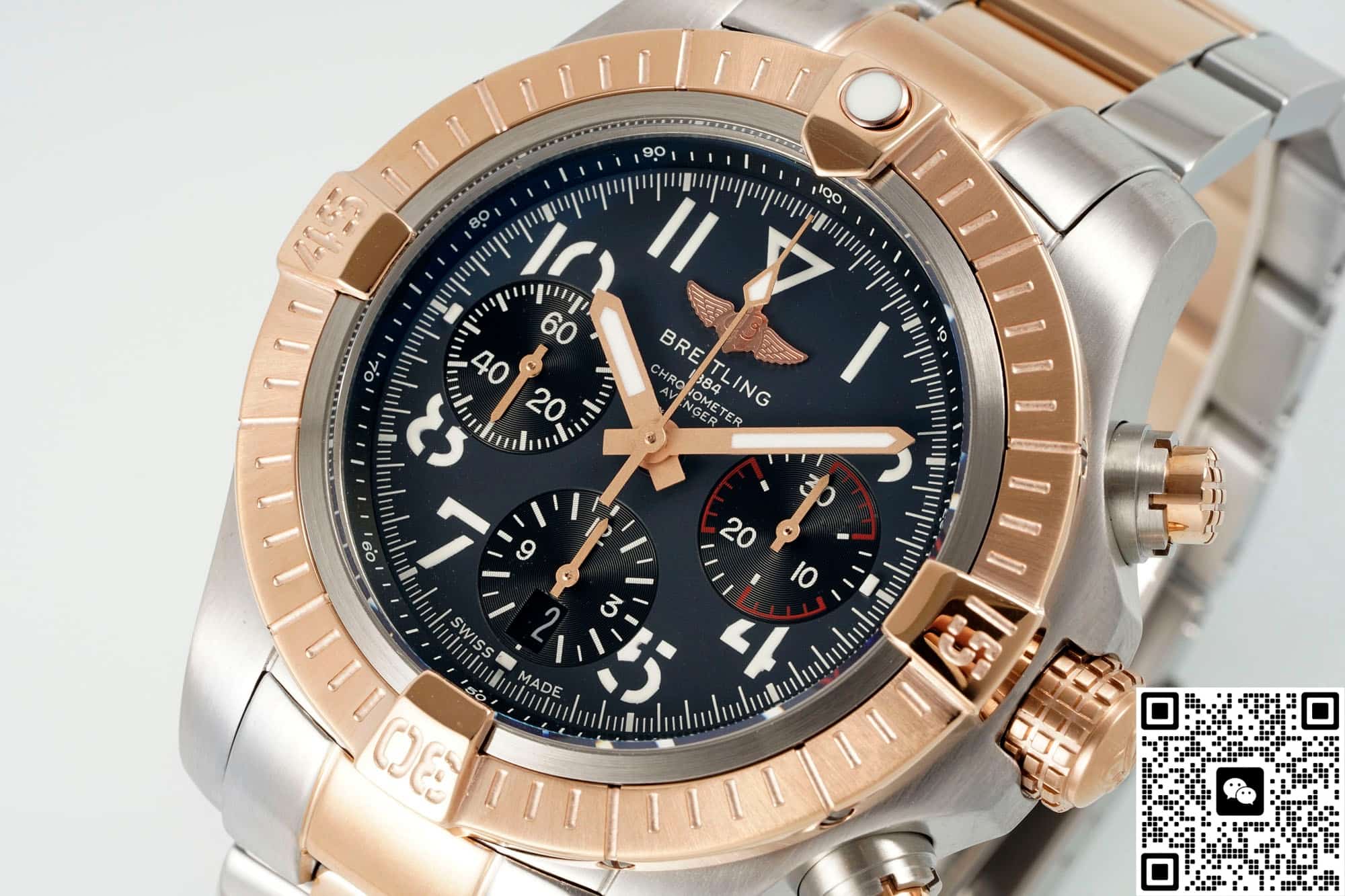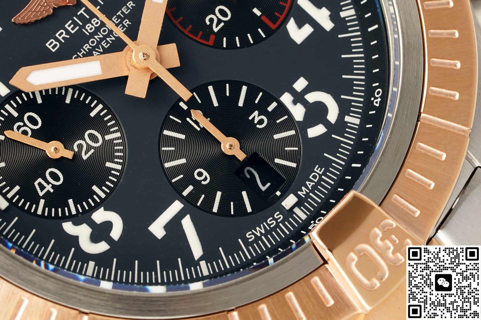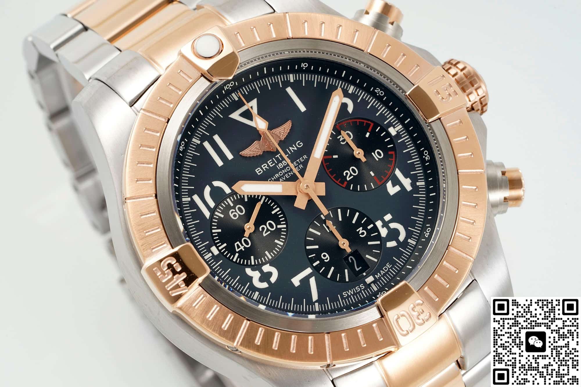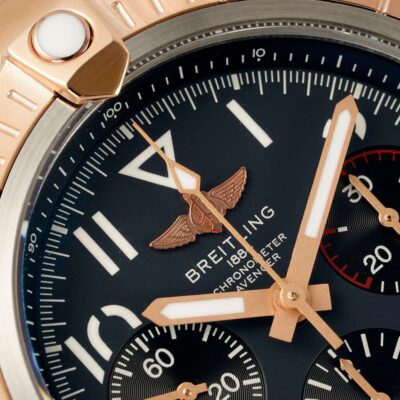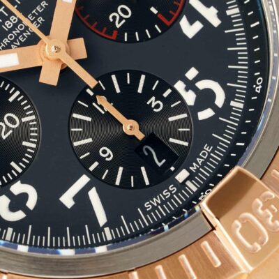 Put the BLS factory Breitling Avenger UB01821A1B1U1 on the table, and the 45 mm red gold outer ring and charcoal ash dial caught the eye for the first time. Breitling’s commonly used aviation fonts, embossed scales and calendar inclined windows are all in place in BLS factory, and it is almost difficult to tell the difference between them and the original within 30 cm of social distance, which is also the peace of mind brought by Breitling’s 1: 1 replica watch.