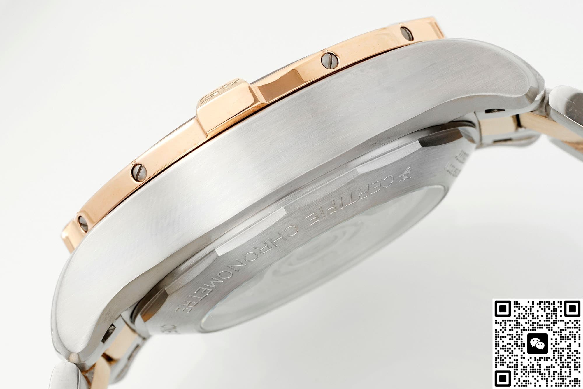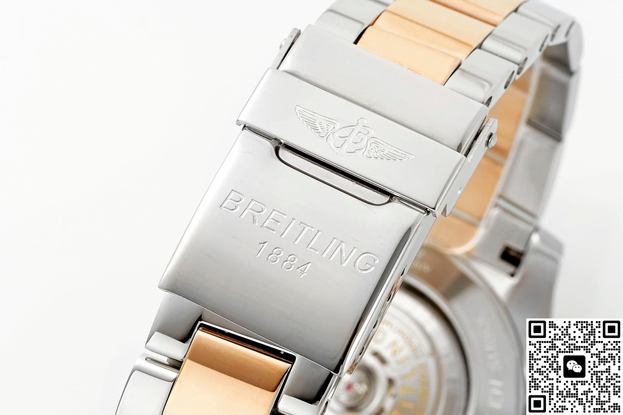 The strap of Breitling Avenger UB01821A1B1U1 replica watch in BLS factory is made of the same 316L material as the case, and the middle link PVD is plated with rose gold. This intermediate gold design is very beautiful, echoing the color matching style of the case, and there are polished chamfers between the links, which will not pinch hands, and it will be warm in winter and cool in summer, and it will be very comfortable to wear.