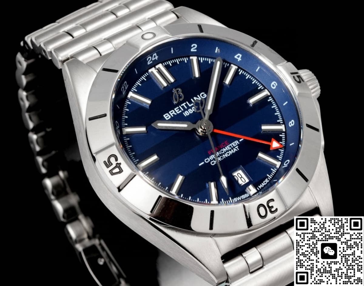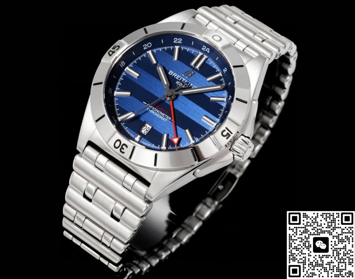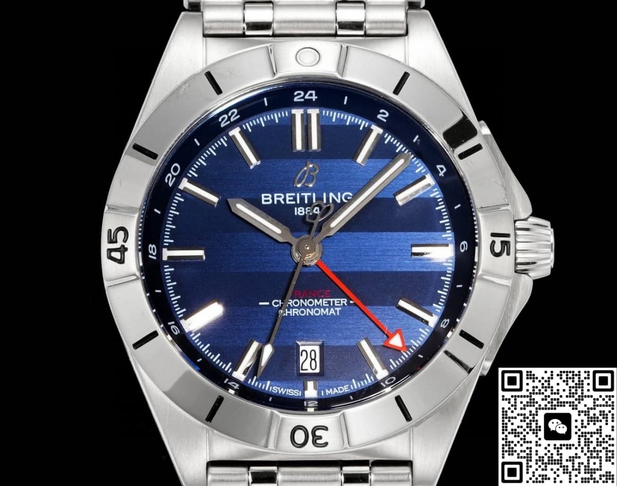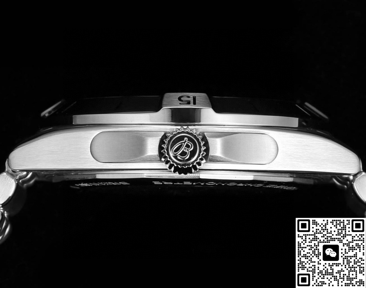 Compared with the original, the dial design of this BLS Breitling watch is almost exactly the same. The dial uses a method of alternating light and dark blue bar-shaped colors. Visually, this adds a dynamic sense of depth to the dial color. If you look closely, you’ll see countless fine parallel lines giving the dial a unique texture. This skilled brushing technique not only makes the dial look more refined but also effectively avoids the harsh glare that can come from a mirror-polished finish.