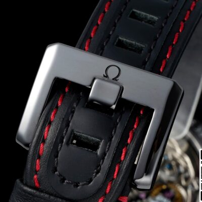 BLS Factory also copied the original’s unique dial design. It uses the same skeleton style, so you can clearly see the movement inside. The main plate and barrel are laser-etched with a honeycomb pattern, and the other bridges are decorated with a black carbon look. This special structure perfectly combines the team’s tech feel with mechanical beauty. The sub-dial at 3 o’clock has red four-minute and five-minute countdown markers. This not only creates a strong color contrast with the black dial but also meets the needs of sail racing. The bezel is made of black ceramic, and the tachymeter scale has lume, so you can read it clearly even in the dark. The central chronograph seconds hand is painted in bright red, matching the overall color scheme and adding a nice pop of color to this BLS replica.