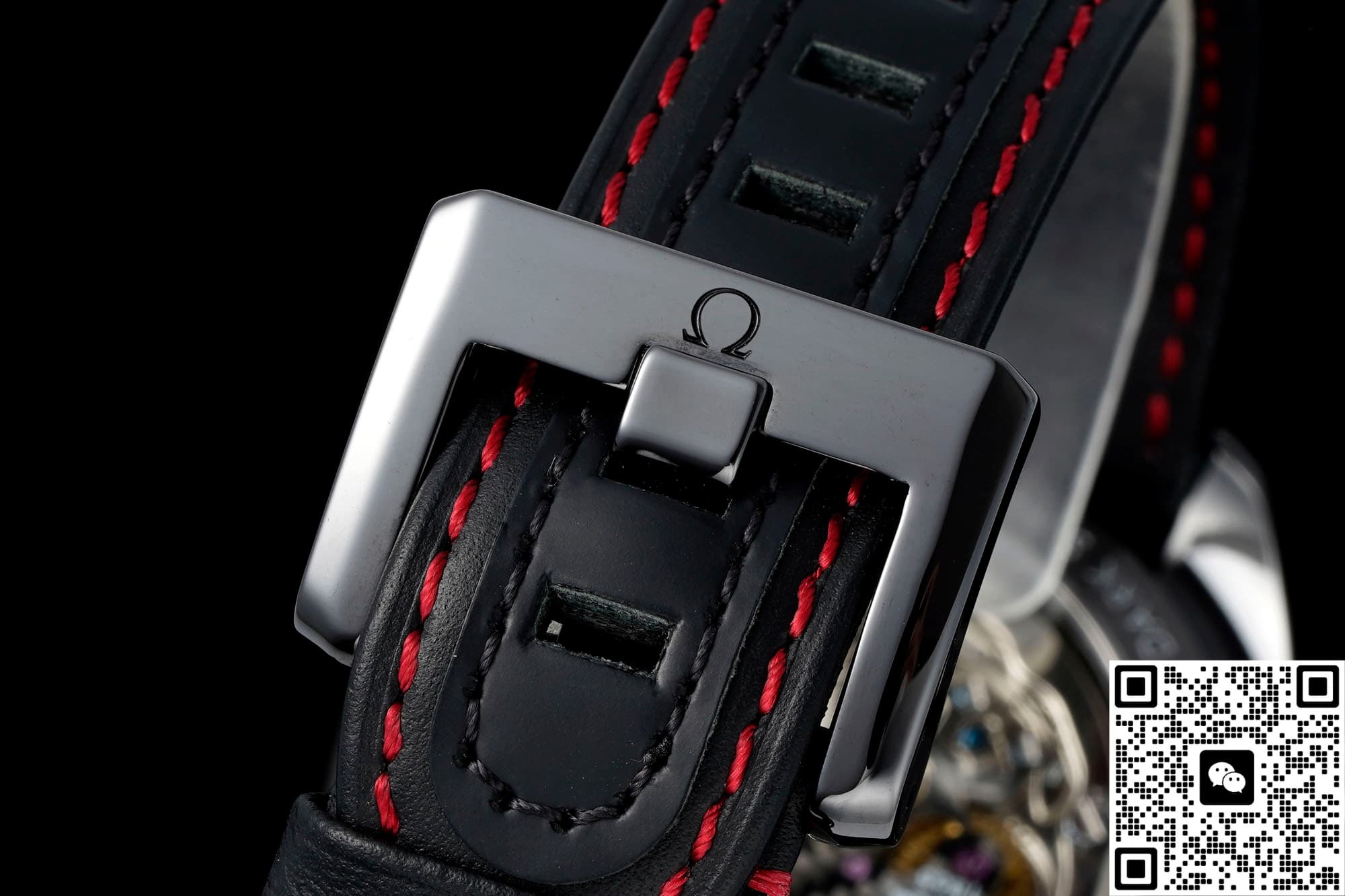 The case and bezel are all black ceramic. This material is about twice as light as stainless steel, and it’s really scratch-resistant. Even after long-term wear, it won’t look dull. The hypoallergenic nature of ceramic also makes this watch more suitable for all skin types, reducing the risk of allergies. The strap is made of black perforated rubber with red stitching, which looks very individual and feels soft and comfortable to wear. If you’re into sports, you’ll love it—it’s breathable, so even in hot weather or after wearing it for a long time, your wrist stays dry. This strap design also matches the black-and-red dial perfectly. The crystal is a domed, double-sided anti-reflective, scratch-resistant sapphire glass. It’s very hard, which helps prevent scratches and gives a clear view of the time. The anti-reflective coating makes it easy to read in any light. Overall, the quality of this BLS Factory Omega watch is really good—definitely worth considering.