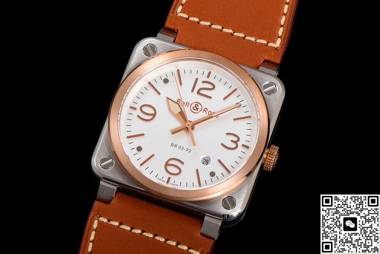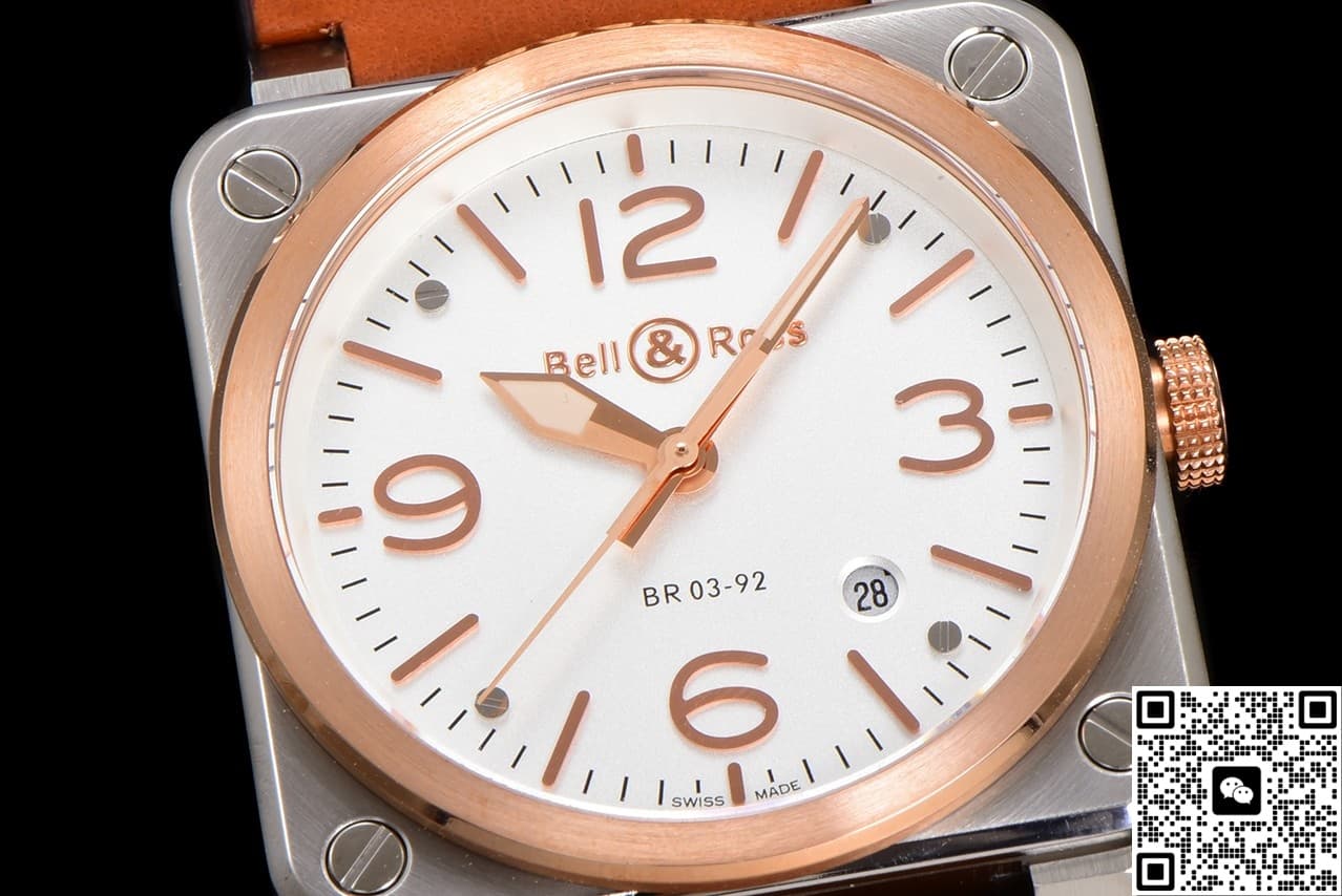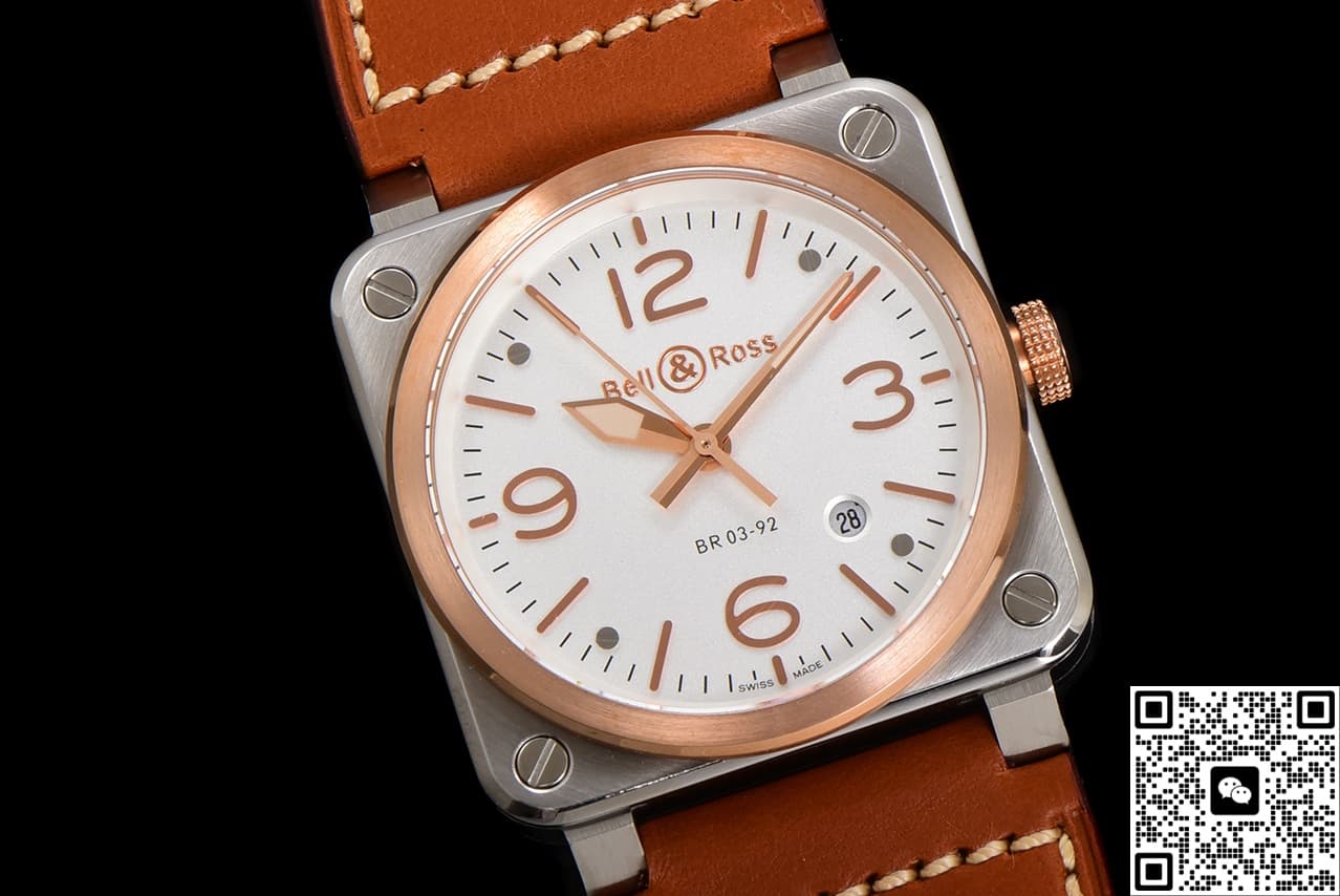 BR Factory Bell Ross INSTRUMENTS BR03A-WH-STPG-SCA Cowhide Strap Replica watch For Sale, it is a watch made by replicating the various parts of the genuine watch according to 1:1 mold opening, that is, a replica watch. Its design, materials, and workmanship will strictly imitate the authentic manufacturing. This kind of watch has many advantages such as high simulation degree, fine workmanship and stable performance. Most replica watches can also achieve all the functions of the original watch, which is why many replica watches can be exported overseas. If you are looking to buy a high imitation watch, then this BR Factory Replica Bell Ross INSTRUMENTS BR03A-WH-STPG-SCA Cowhide Strap is a very good choice.