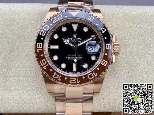 What is a replica watch? To put it simply, it is a watch made by replicating the various parts of the genuine watch according to 1:1 mold opening, that is, a replica watch. Its design, materials, and workmanship will strictly imitate the authentic manufacturing. This kind of watch has many advantages such as high simulation degree, fine workmanship and stable performance. Most replica watches can also achieve all the functions of the original watch, which is why many replica watches can be exported overseas. If you are looking to buy a high imitation watch, then this C+ Factory Rolex GMT Master II M126715CHNR-0001 Black Dial is a very good choice.