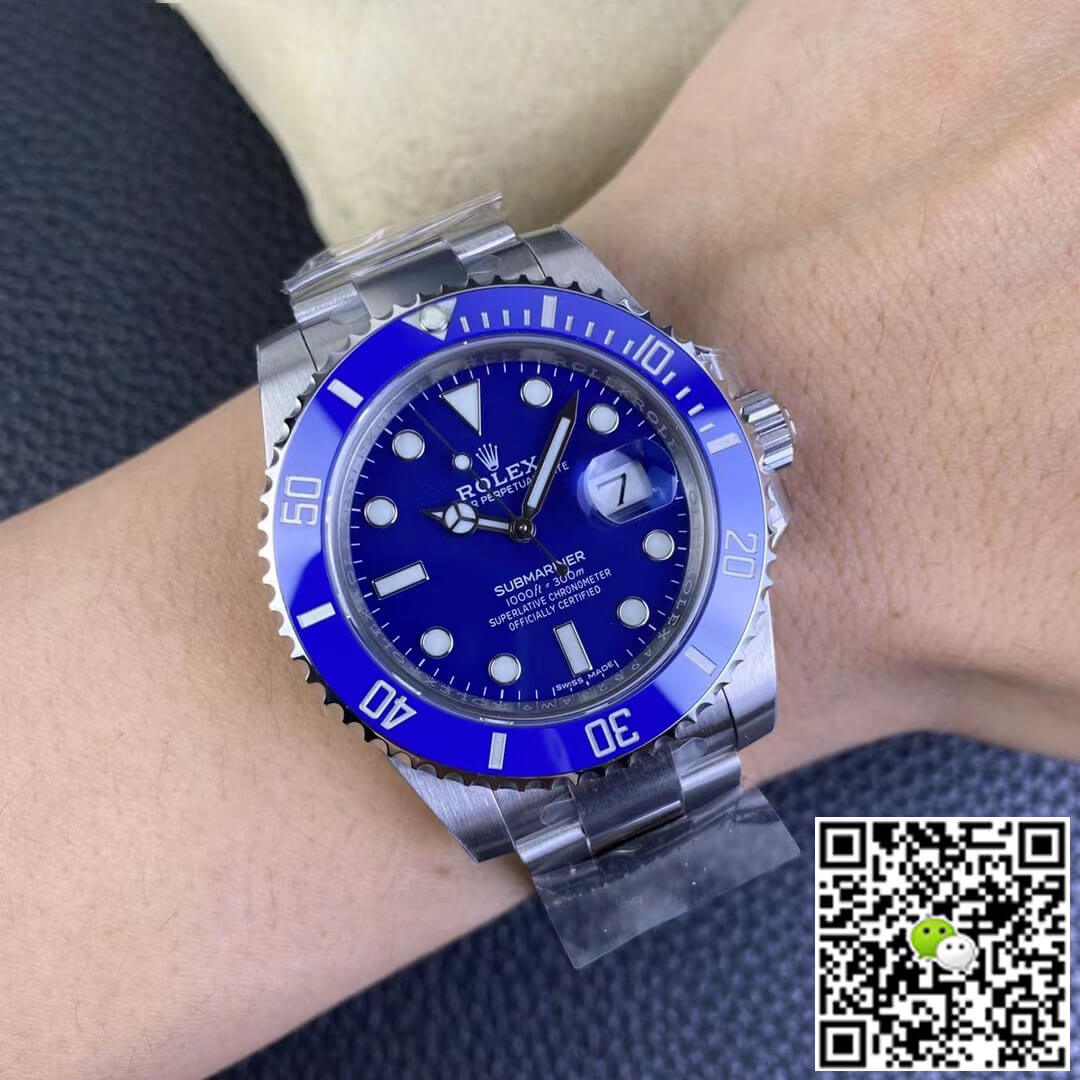 What is a replica watch? To put it simply, it is a watch made by replicating the various parts of the genuine watch according to 1:1 mold opening, that is, a replica watch. Its design, materials, and workmanship will strictly imitate the authentic manufacturing. This kind of watch has many advantages such as high simulation degree, fine workmanship and stable performance. Most replica watches can also achieve all the functions of the original watch, which is why many replica watches can be exported overseas. If you are looking to buy a high imitation watch, then this Clean Factory Rolex Submariner 116619LB-97209 40MM V5 Blue Bezel is a very good choice.