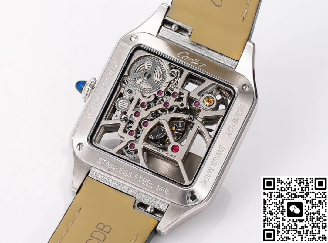 The square dial is a classic look—retro and elegant. The skeleton dial on this CLG Factory Cartier replica watch has a lot of artistic appeal. For me, it’s not just about telling time, it’s more about showing off your own unique taste. The open dial lets you clearly see the whole movement inside. Watching all those precise parts turn and the gears mesh is like a cool little visual show. There are also a few pink-purple gemstones set on the movement, very similar to the original, which instantly gives the watch a more luxurious feel.