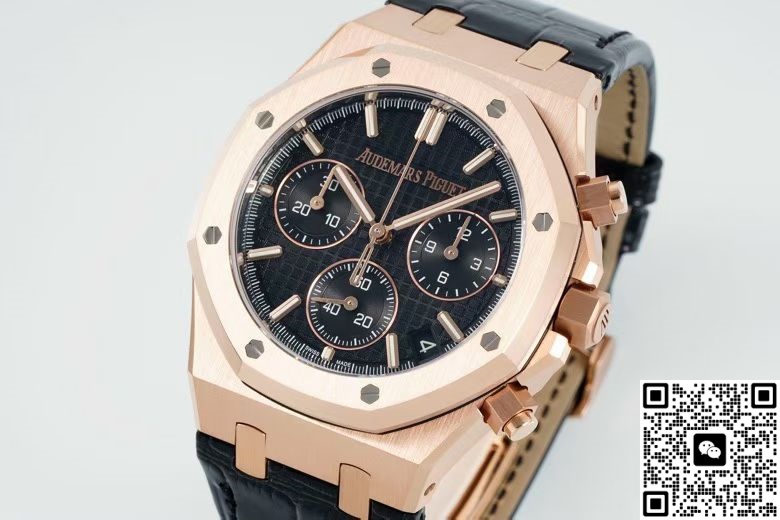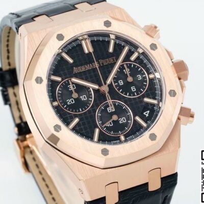 Today, let’s talk about this watch from DDF Factory – the Audemars Piguet Royal Oak 26240OR.OO.D002CR.02 replica watch. This watch looks very refined on the outside. It’s a 1:1 replica of the original design. The golden case and bezel give it a luxurious and grand feel. Wearing it instantly boosts your presence. The black dial is calm and low-key, full of character. This watch combines many of Audemars Piguet’s classic design elements, making it highly recognizable. The 41mm case size suits most men and can slip perfectly under a shirt cuff when wearing a suit. Below, I’ll introduce this watch from multiple angles.