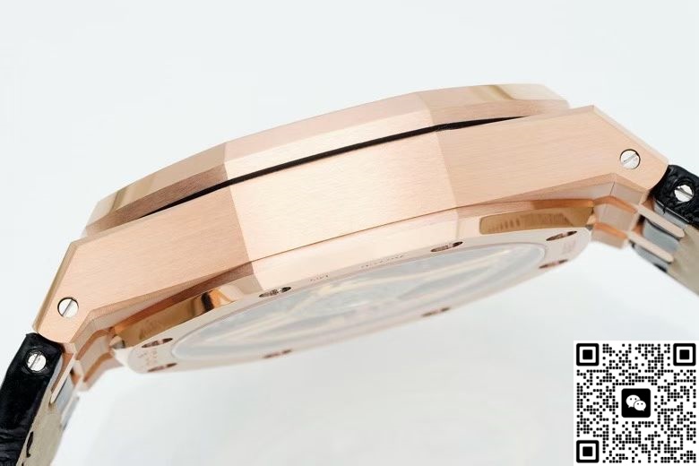 Compared with the original, the materials used by DDF Factory for this Audemars Piguet Royal Oak are of very good quality. The strap is made of crocodile leather, whose texture cannot be matched by ordinary materials. The crocodile leather strap has its own unique graining, with a strong three-dimensional feel. It is also very wear-resistant. Daily friction and bumps won’t easily leave marks on the strap. Over time, with wear and the natural oils from your skin, the strap’s luster will actually improve – it gets better with age.