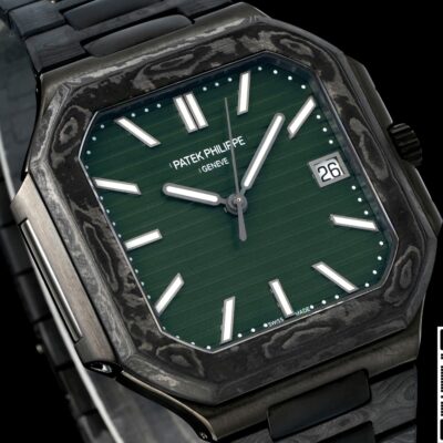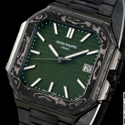 In the replica world, whenever someone mentions “carbon fiber,” many enthusiasts immediately think of DIW Factory. This niche custom workshop from Eastern Europe started out just doing lightweight case modifications for clients. But they blew up on social media after swapping Rolex Submariner and Daytona cases for carbon fiber ones. Now, they’ve set their sights on the latest 2025 Patek Philippe Cubitus 5821. They’ve completely transformed the original with their signature black carbon fiber weave and an olive green dial. If you’re looking for a watch that satisfies your desire for Patek Philippe design, lets you avoid the mainstream steel watch crowd, and is both lightweight for daily wear and visually striking, the DIW Factory Patek Philippe Cubitus 5821 Carbon Fiber version replica watch is pretty much a shortcut.